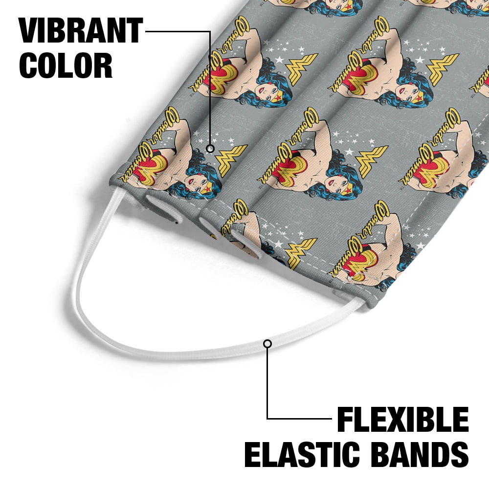 - WONDER WOMAN VINTAGE ICON PATTERN FACE MASK – Our 100% polyester mask is made with 1 layer that is printed with your favorite design.