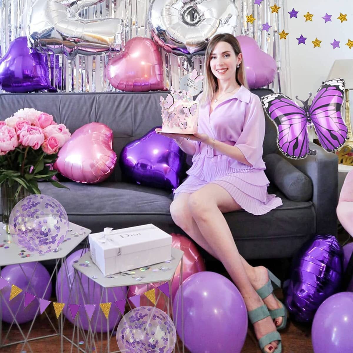 - 【Birthday Decoration】If you want to have a pastel party for your girls or family, The Purple Butterfly Theme Party Decorations can be at your service,with those purple themed foil balloons and Butterfly balloons being the highlight of your party decorations!Using a pump to inflate these purple shades balloons is strongly recommended! Purple variety balloons will be shipped uninflated.Party decoration supplies to easily decorate a high fashion birthday party.Creates a fun atmosphere!!