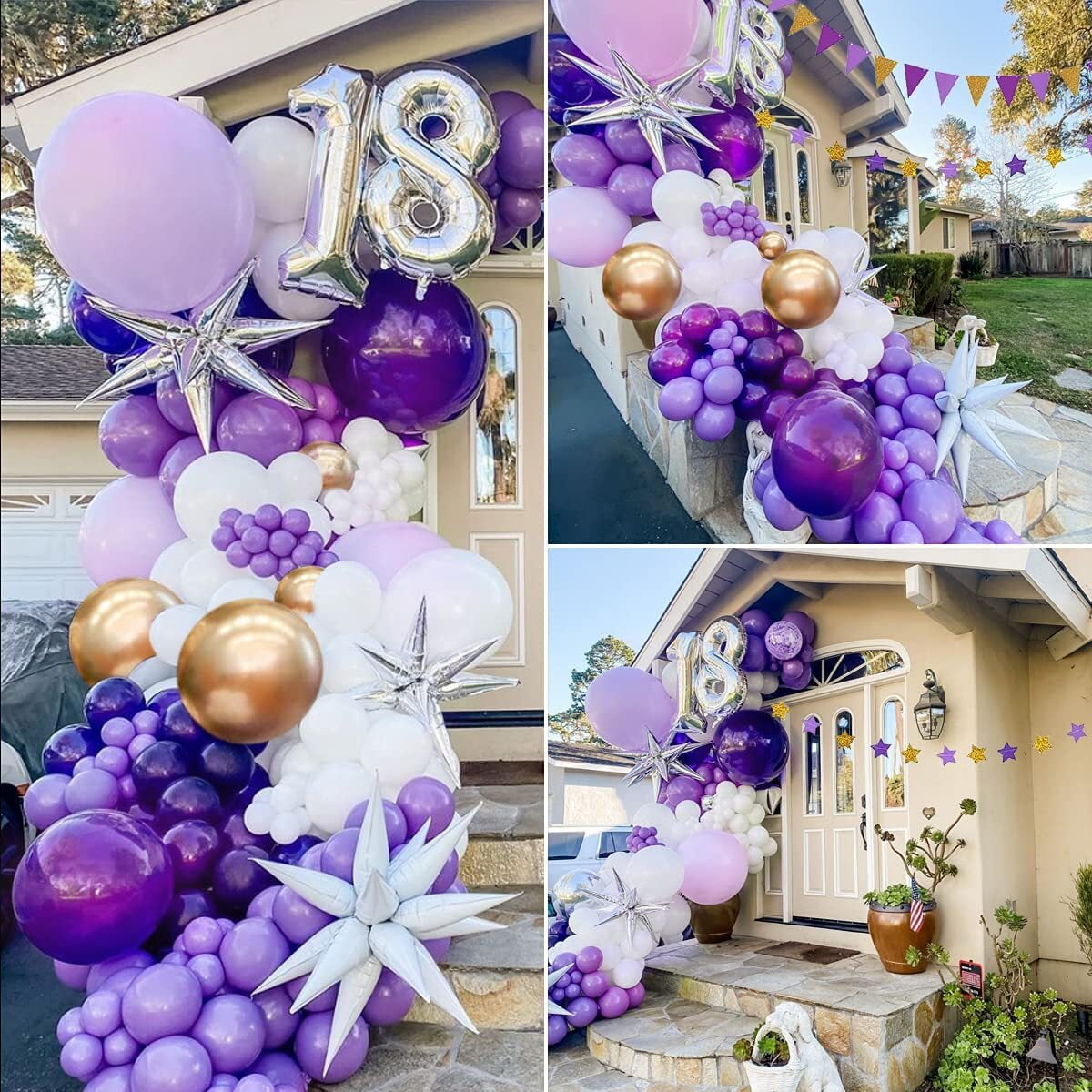 - 【Dream Like Happy Birthday Balloon Decorations】Our Purple Birthday Party Balloons kit will be the hit of your party! It can be used in all ceremonies, such as Birthday Party, Baby shower, family Reunion other holiday Festival decorations. 100% do it yourself. We provide Everything that you will need to create a beautiful backdrop for your celebration.Color of purple adds romantic and festive atmosphere to birthday party.Use them to liven up the party venue and win over the hearts of guests.