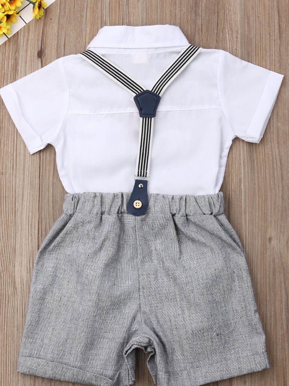 2PCS Kid Baby Boys Short Sleeve Tops Blouse+Bib Shorts Formal Outfit Clothes