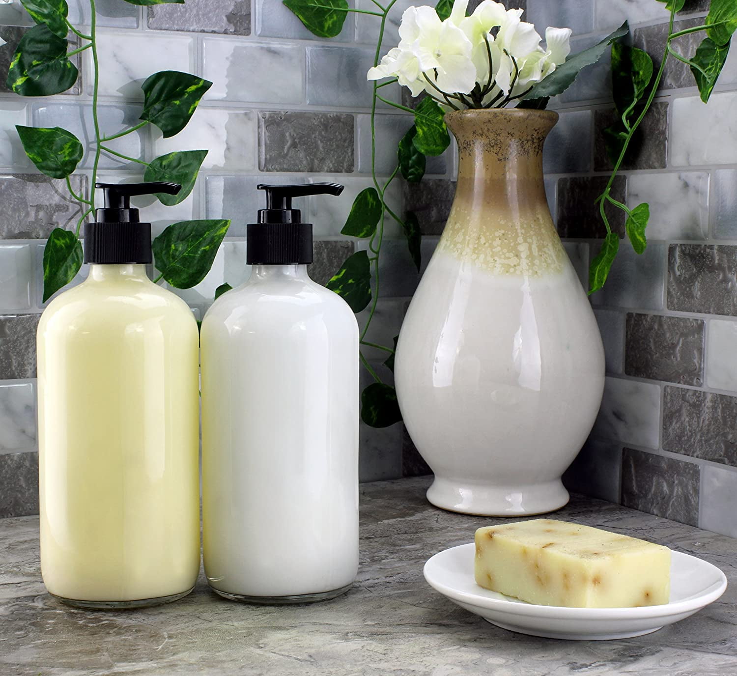 16-Ounce Clear Glass Pump Bottles (2-Pack; 16oz), Refillable Soap Dispensers