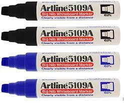 Artline 5109A Big Nib 10mm Dry Erase Extra Thick Whiteboard Markers, 4 Markers (2 Black, 2 Blue)