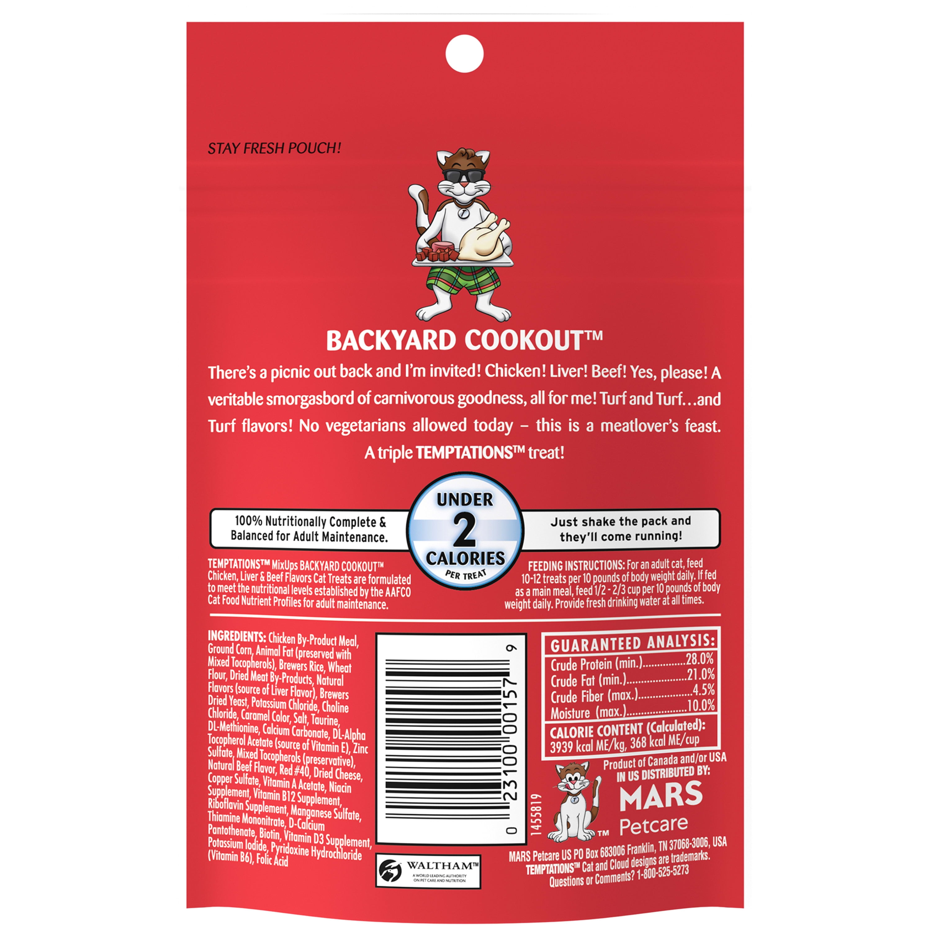 TEMPTATIONS MIXUPS Crunchy and Soft Cat Treats Backyard Cookout Flavor, 3 oz. Pouch
