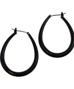 Black Tube Oval Teardrop Hoop Loop Pierced Earrings 1 3/8′ Ladies Adult Female Women