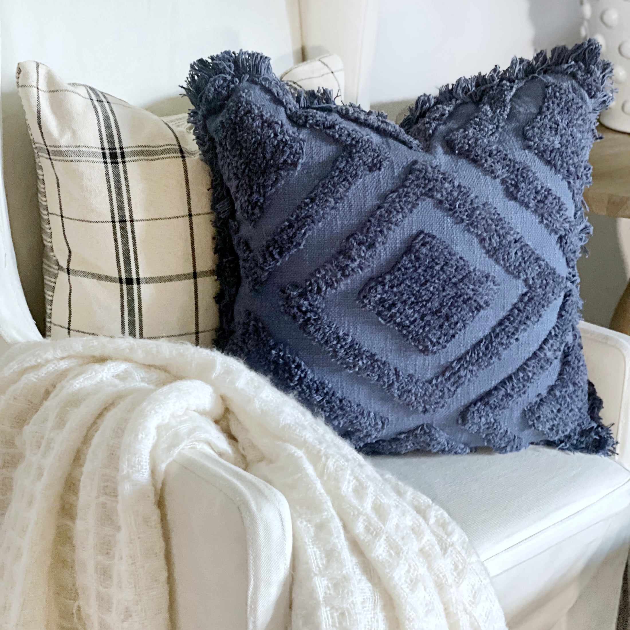 My Texas House Keller Tufted Cotton Square Decorative Pillow Cover, 20′ x 20′, Navy