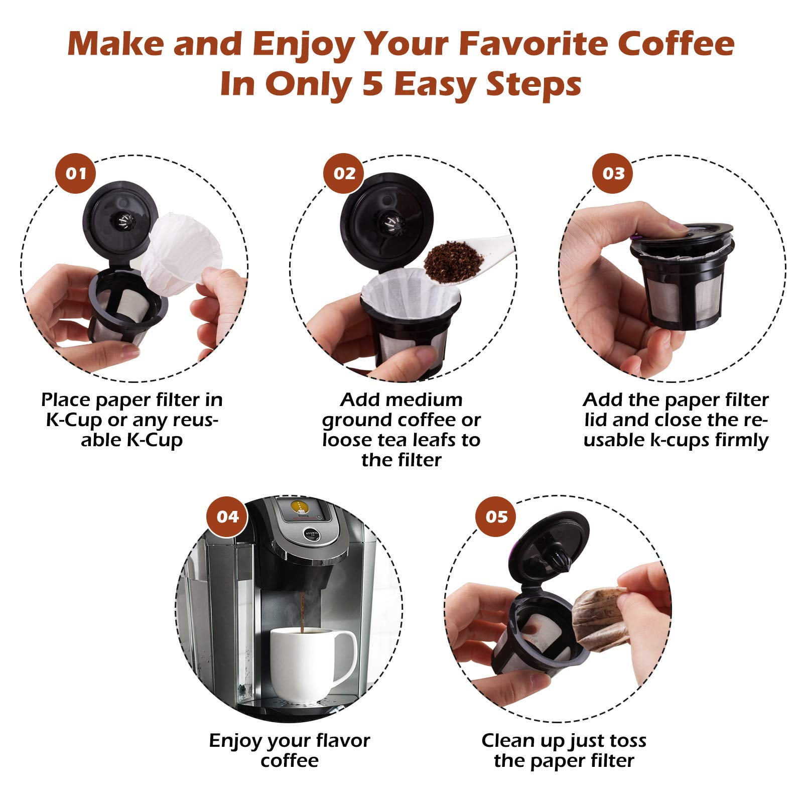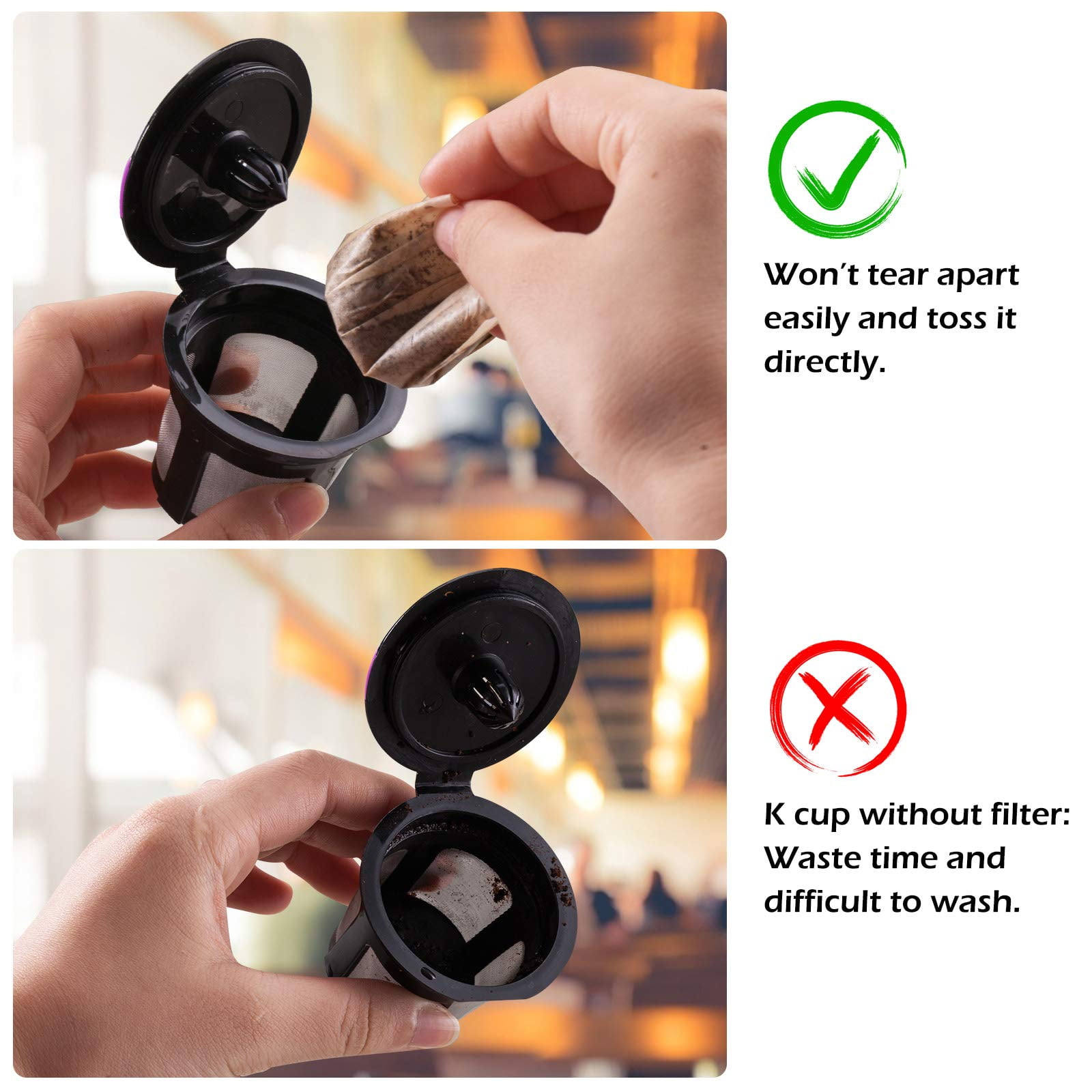 The coffee filter paper can match filtering cup, works with standard for K-eurig machines.Easy to clean and easy to use, just place the filter in a K carafe cup, fill with your favorite kinds of coffee, close the lid and brew away. No mess, let you simple and quick to enjoy delicious coffee anytime and anywhere.
