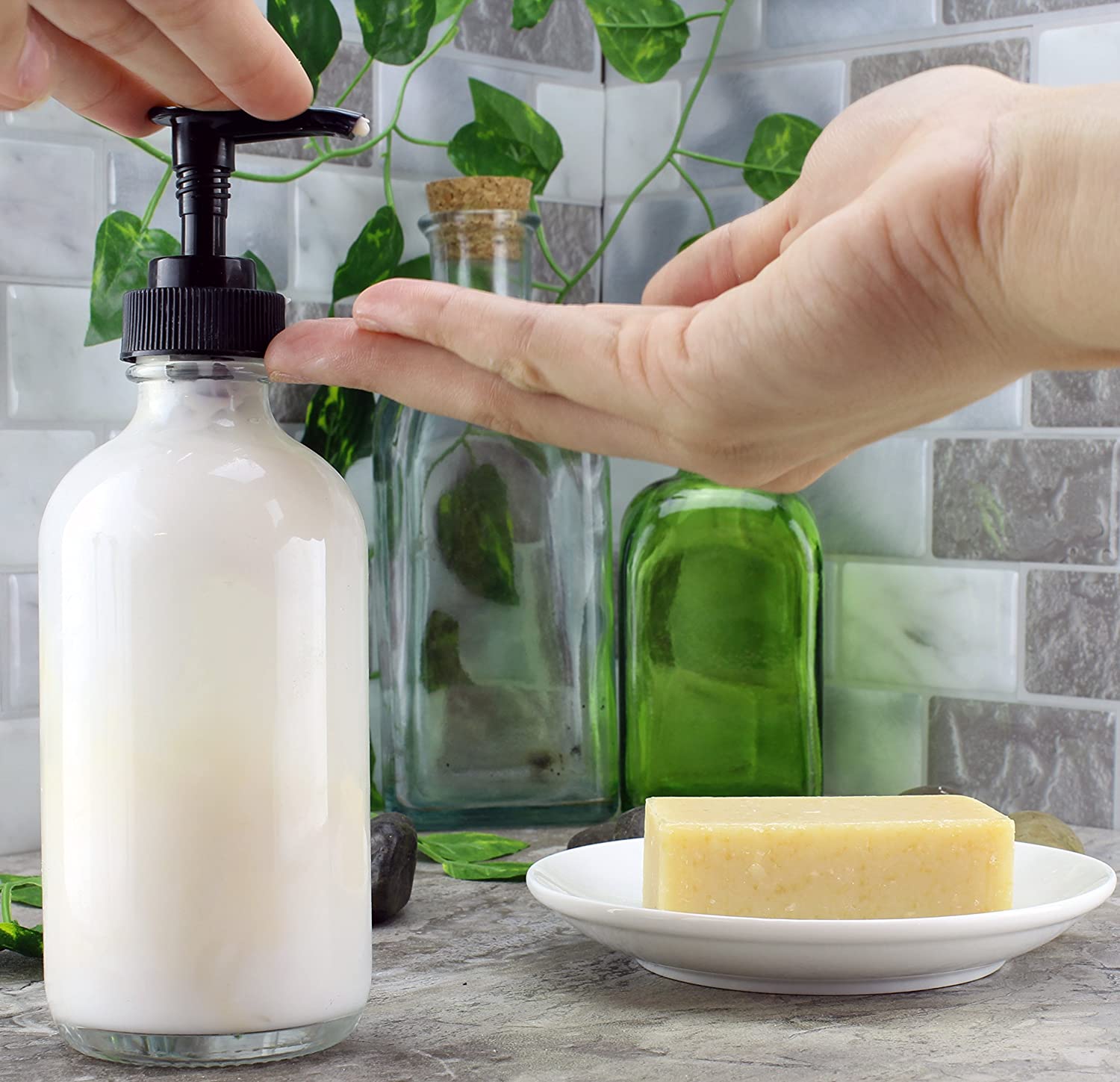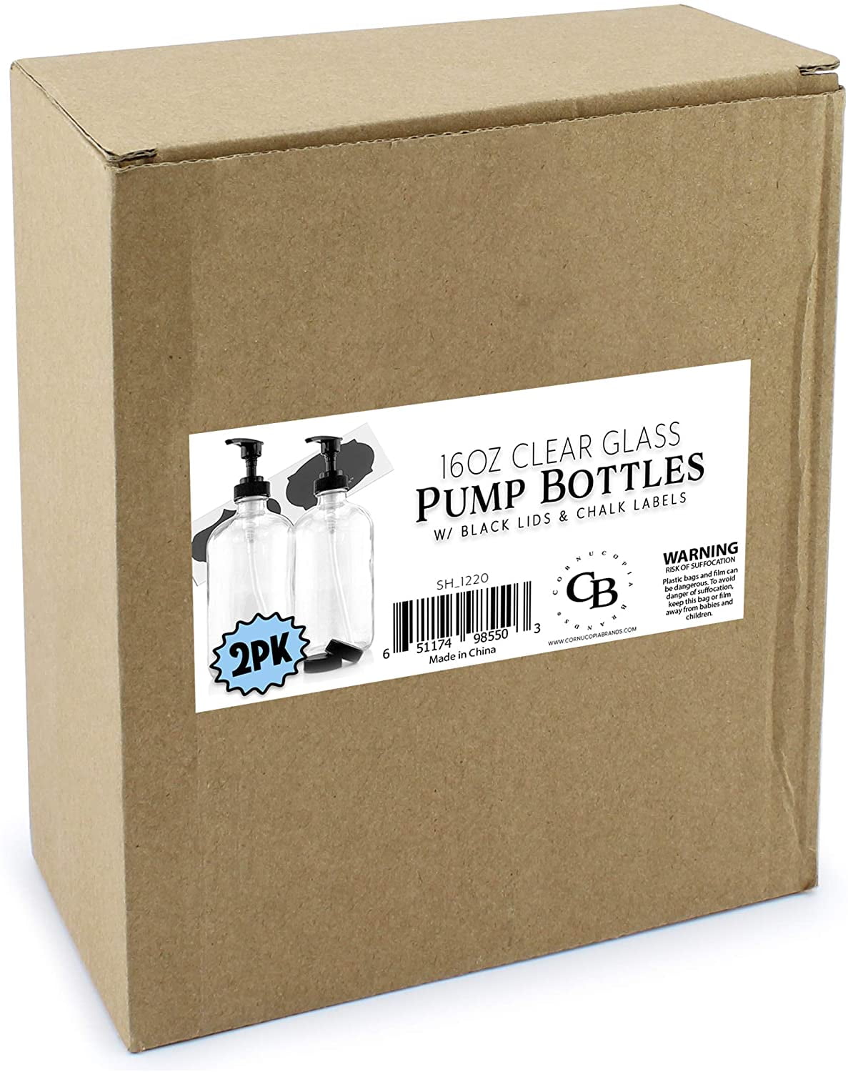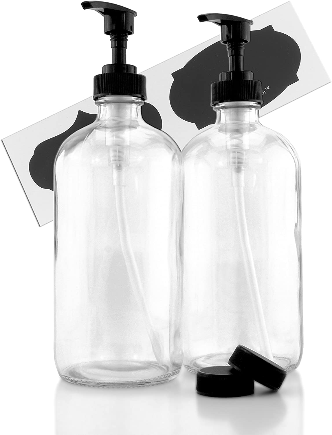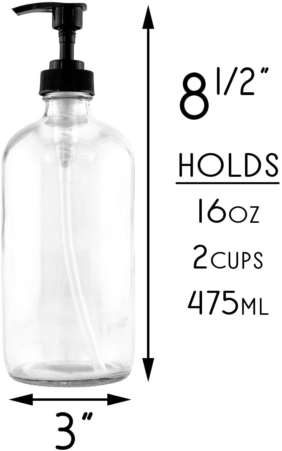 16-Ounce Clear Glass Pump Bottles (2-Pack; 16oz), Refillable Soap Dispensers