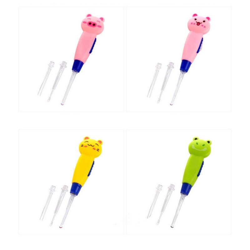 Including a large earpick spoon, a small earpick spoon and a tweezer. Safe, non-toxic.