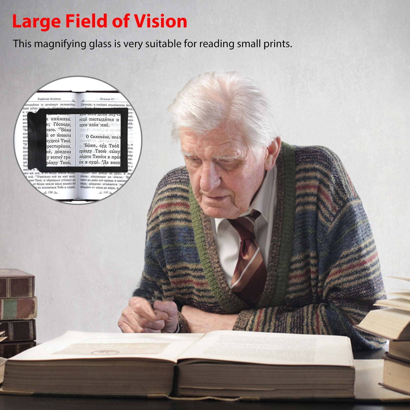 EEEkit 3X A4 full-page magnifier can offer a larger reading area, allowing you to read the entire page, reducing the hassle of moving multiple times while reading. Our magnifier is made of PVC material, which is strong and light, suitable for the elderly who like long reading time, without feeling tired. This black magnifying glass also uses a clear optical design, it is suitable for the elderly and people with low vision. Moreover, this 3X magnifying glass is very suitable for reading small prints, it is considered to be the most comfortable magnifying glass for reading documents, maps, and small fonts, suitable for long-term reading. So you can use it in reading newspapers, documents, maps, coins, stamps, electronic parts, jewelry, photos, crafts, needlework, plants, and other close work. The compact size and light design make it easy to carry and travel to any place you like. It will be a good assistant as a gift for your families and friends.