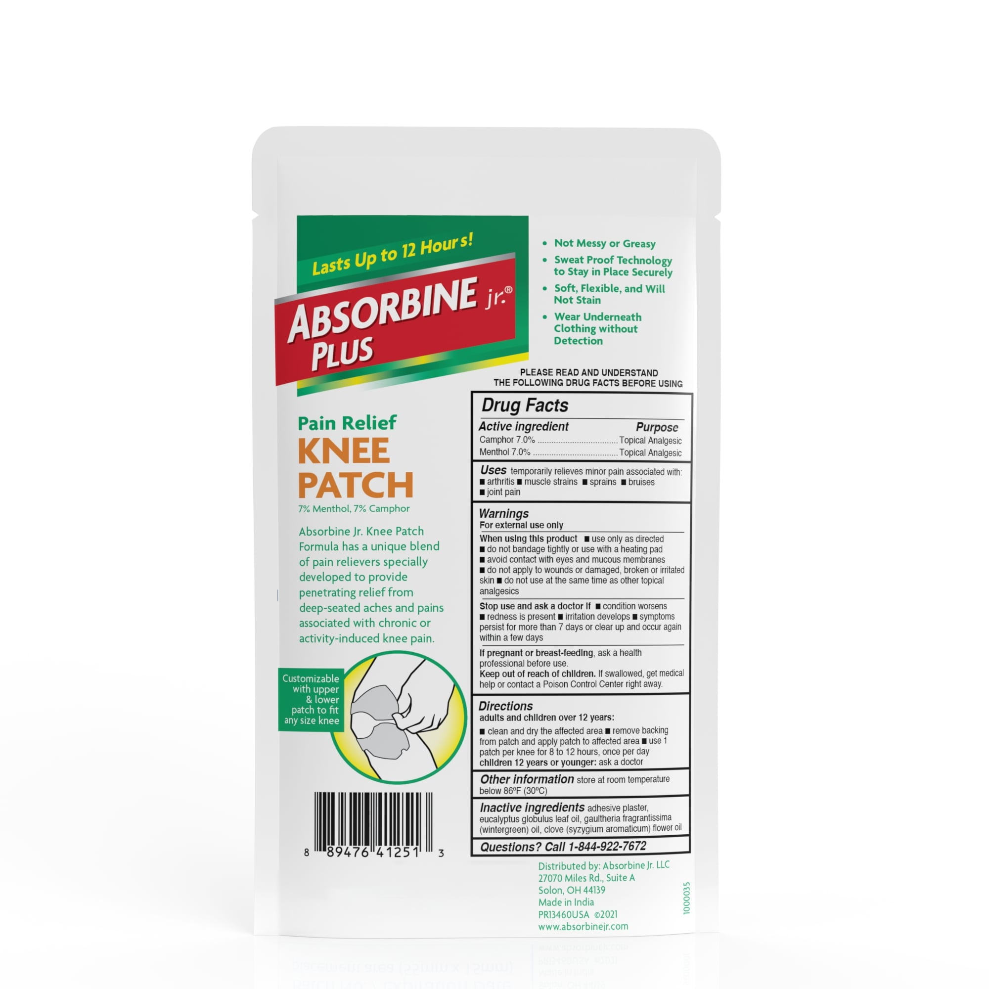 - Specifically designed for the knee: Absorbine Jr. Pain Relieving Knee Patch is specifically designed with an upper and lower patch allowing it to be customized to fit any knee