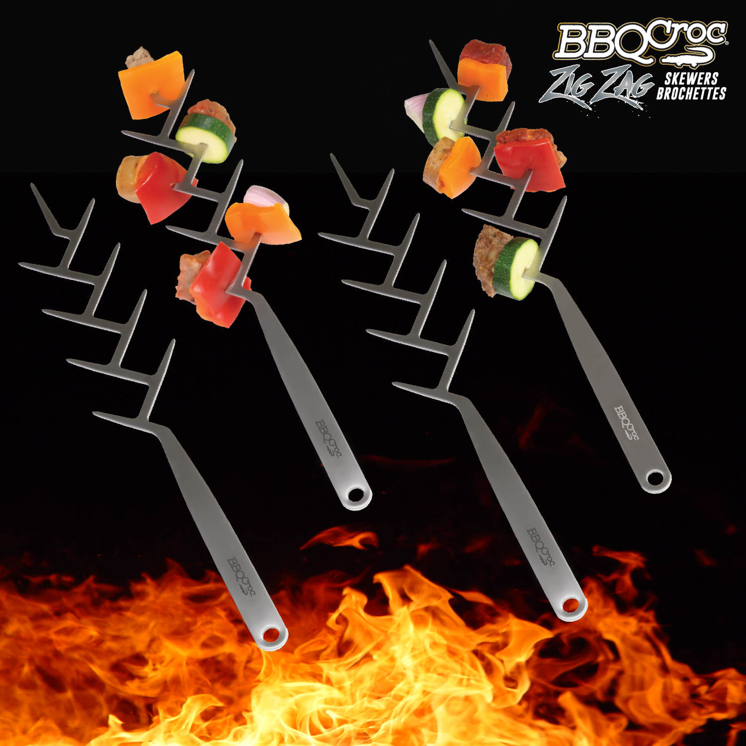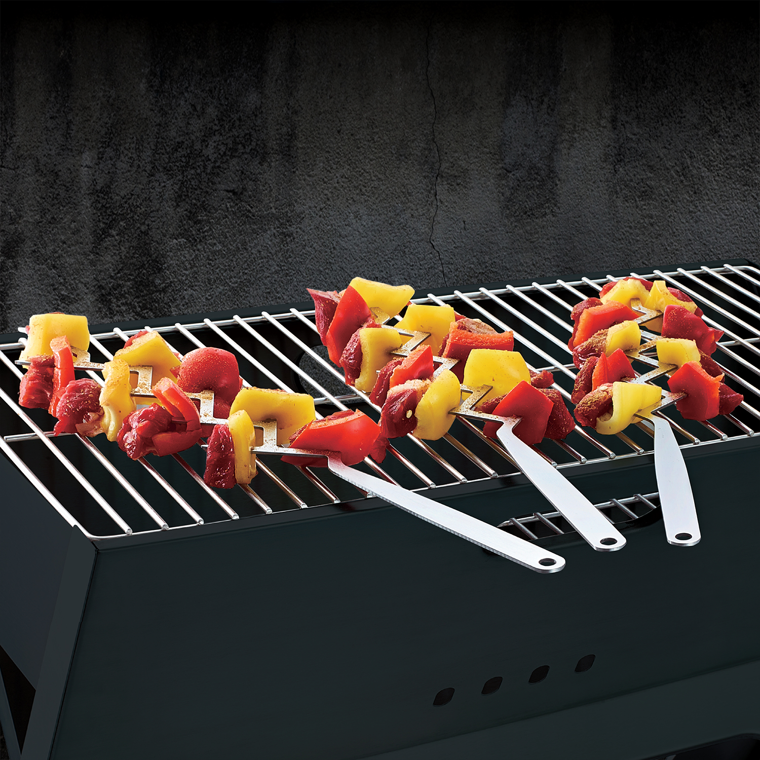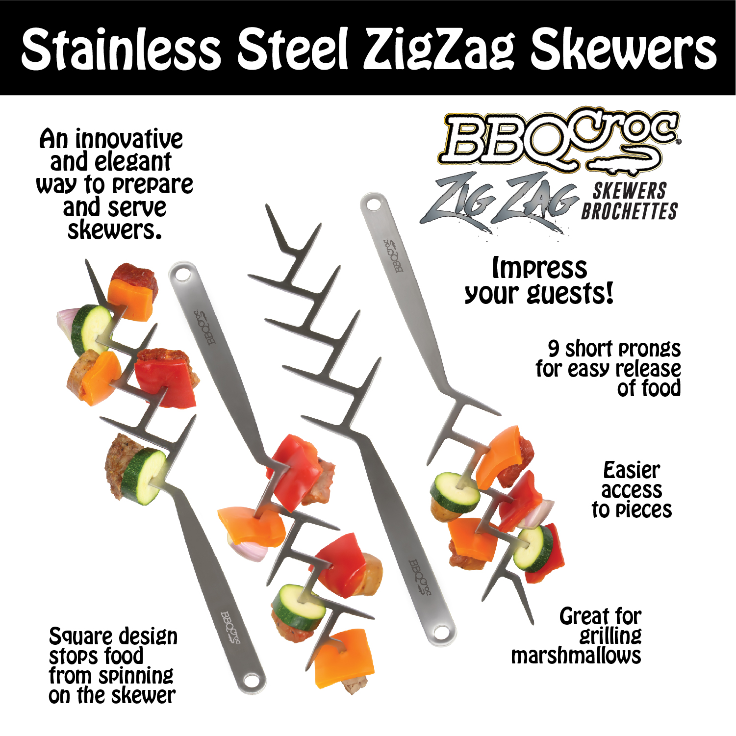 - Square design prevents food from spinning on the skewer