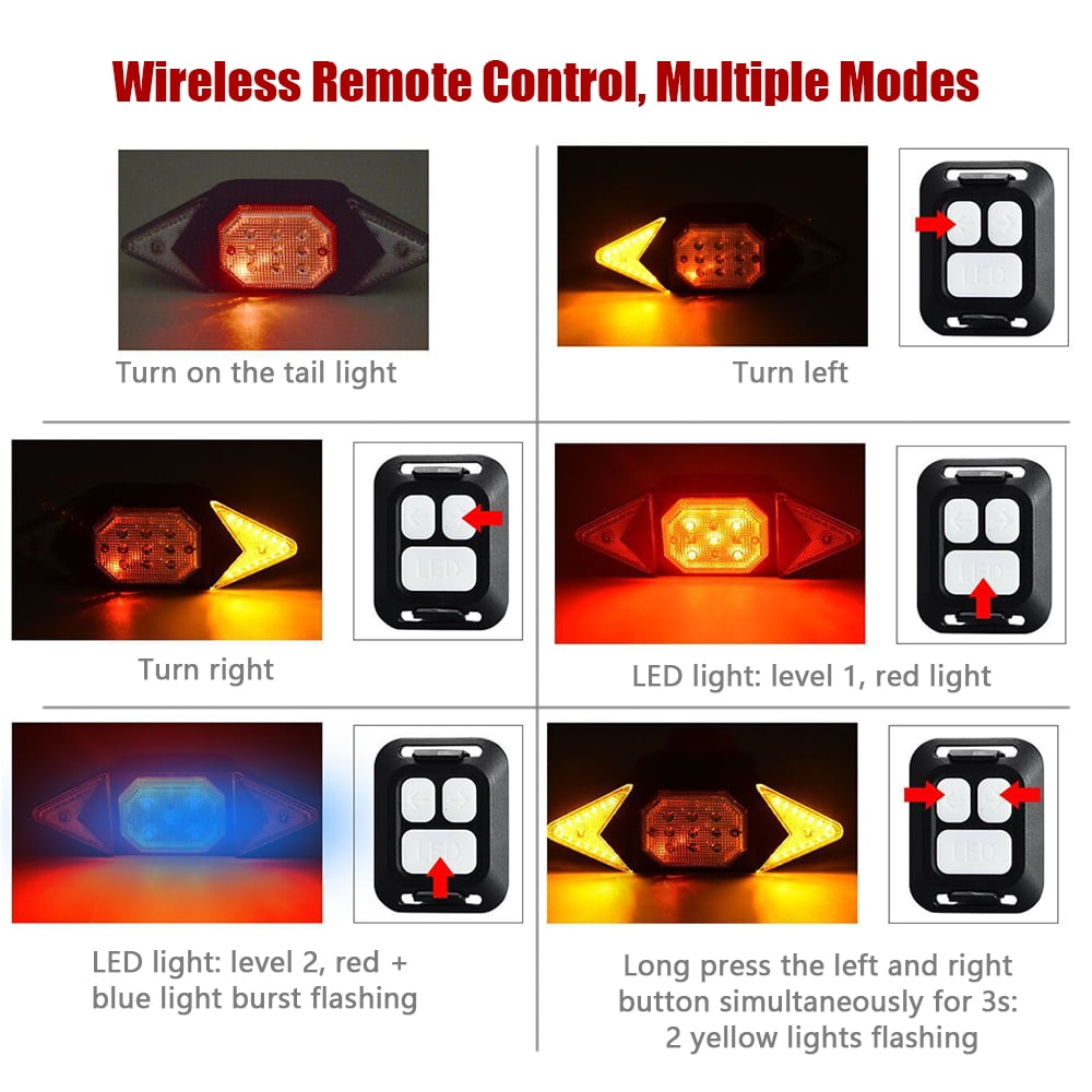 Bicycle Taillight With Remote Control Wireless Rechargeable Bike Tail Light Waterproof Cycling Turn Signal Waringing Light Led Rear Lights For Road Bikes Mountain Bicycles