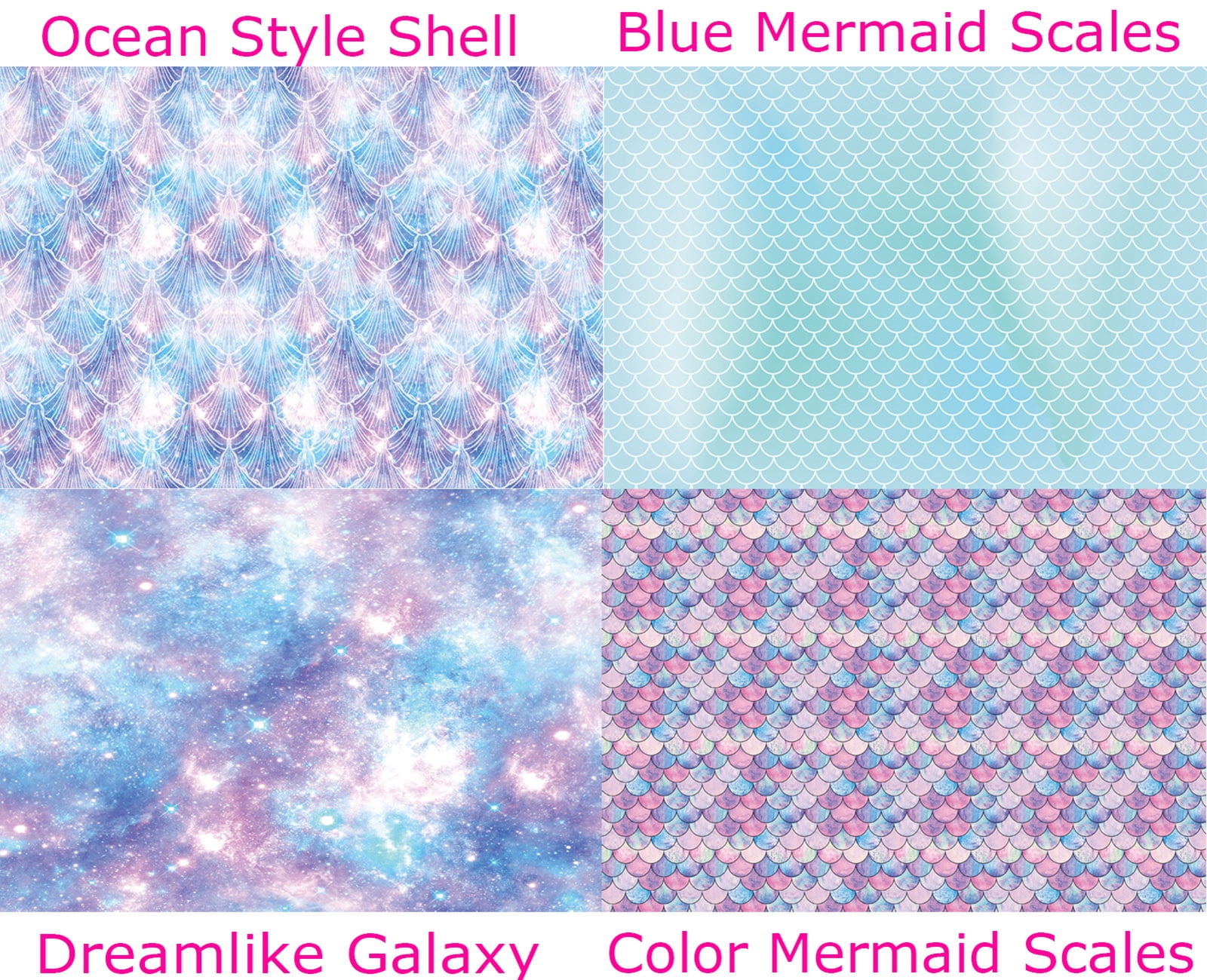 - UNIQUE PATTERNS: Style-1 design element: Ocean style scallop;Style-2 design element: Mermaid scales;Style-3 design element:Mysterious galaxy, Style-4 design element: color mermaid scales