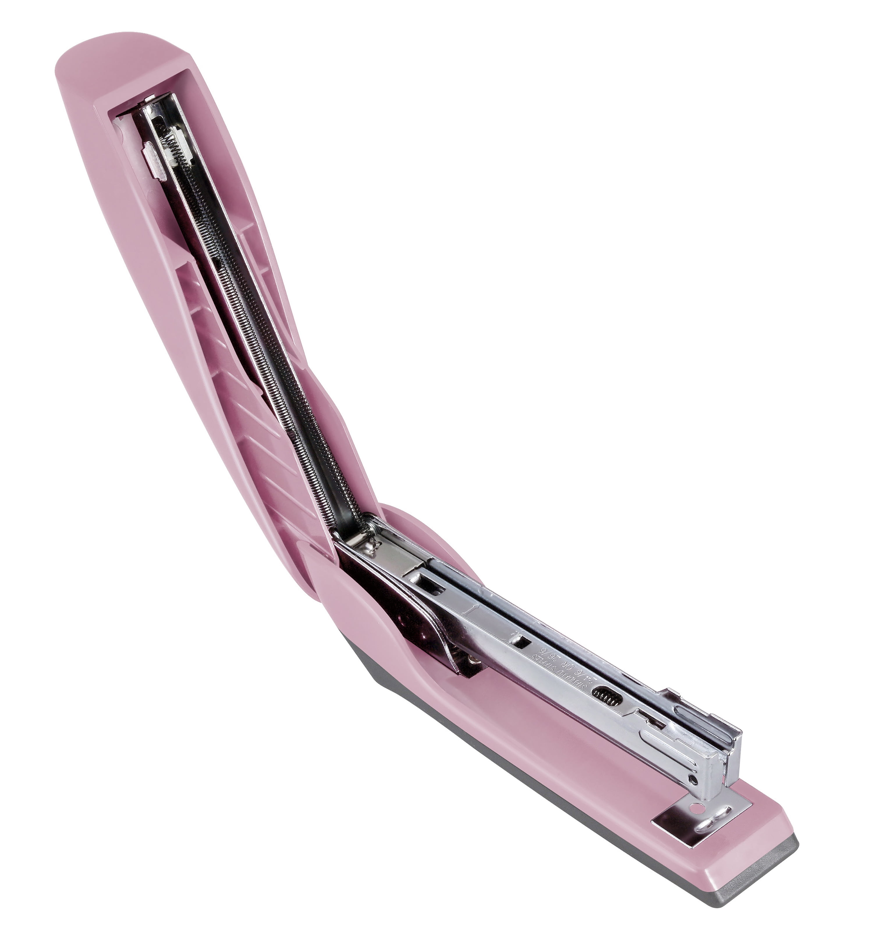 Convenient all-inclusive stapling kit includes a stapler, push-style staple remover and staples. Ergonomic, "velvet-skin" stapler with an easy-to-grip texture stands vertically or horizontally for easy access and storage. No-Jam technology ensures smooth, jam-free stapling. Stapler fastens up to 20 sheets. Easy-to-use, push-style staple remover forces the staple up out of the paper while the staple grabber secures it for easy cleanup. Soft grips on the wand allow easy handling. The Velvet No-Jam™ Pink Stapler now provides ultimate comfort with its luxury velvet skin that offers a soft and easy-to-grip texture. The contoured, ergonomic stapler shape fits perfectly in your hand, enhancing the comfort of stapling. Its versatile form allows it to stand upright or lay flat to complement your desk. Its high performance driving system enables you to easily staple up to 20 sheets while the No-Jam™ technology eliminates the risk of frustrating staple jams. So you are never caught by surprise, the staple reload window alerts you when it’s time to reload staples. The complete Plus Pack set includes a velvet pink stapler, a matching easy push-style staple remover with magnetic staple pick-up, and 1200 Bostitch premium standard staples to get you started right away! Full-strip staple capacity holds one strip of 210 standard staples. Kit includes 1,200 standard staples for immediate use.