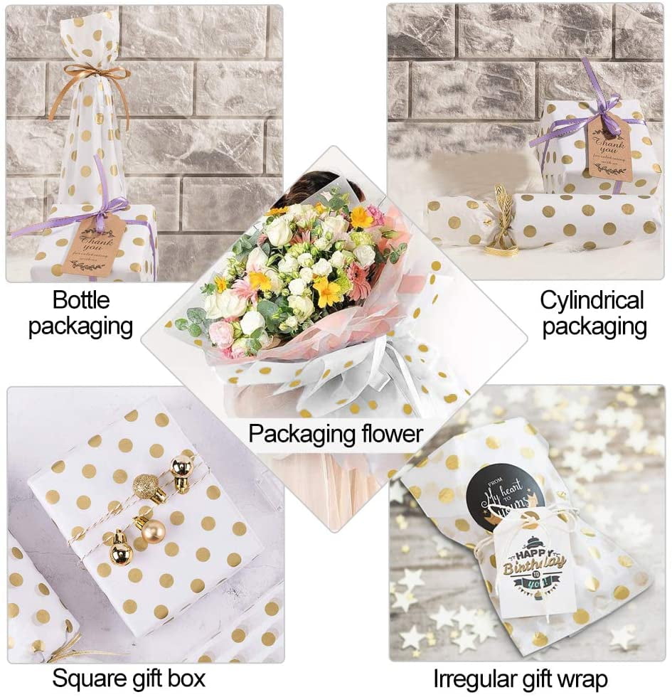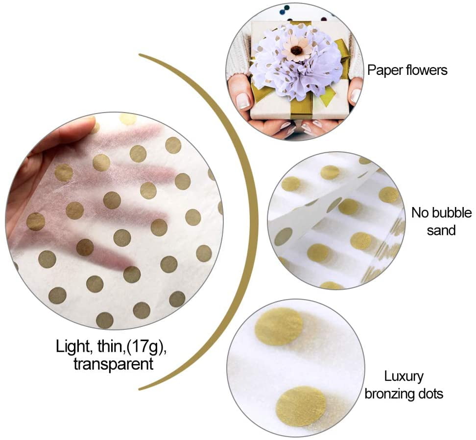 BUZIFU Tissue Paper Sheets,50 Sheets White Gift Wrapping Paper with Gold Polka Dots,with warm color,can meet your different needs.