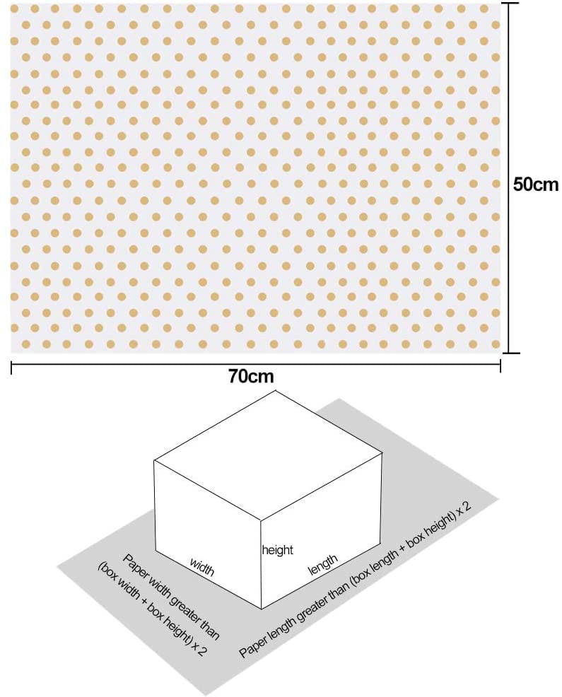 4,A total of 50 sheets of wrapping paper,and the size of each paper is 50 X70cm/20inch x28inch,suitable for gift baskets,gift boxes,large and medium-sized gift bags and most other regular gifts. 5,You can cut and use as needed.