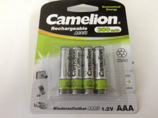 1 Pack of 4 Camelion Economical Energy 300mAh Rechargeable AAA NiCD Batteries for all devices that use AAA size batteries. (Retail Packaging) Product Eligible for FREE SHIPPING! Free Shipping Offer Applicable for items shipped to US Addresses ONLYCamelion Economical Energy AAA Rechargeable NiCD Batteries 300mAh 4 Pack Retail + 30% Off!