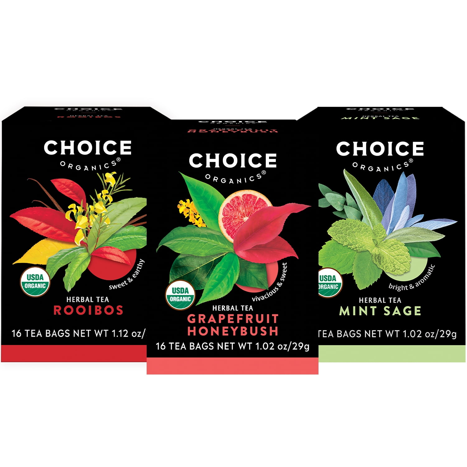 Choice Organics Herbal Tea Variety Pack, Caffeine Free, Herbal Tea Bags, 3 Boxes of 16