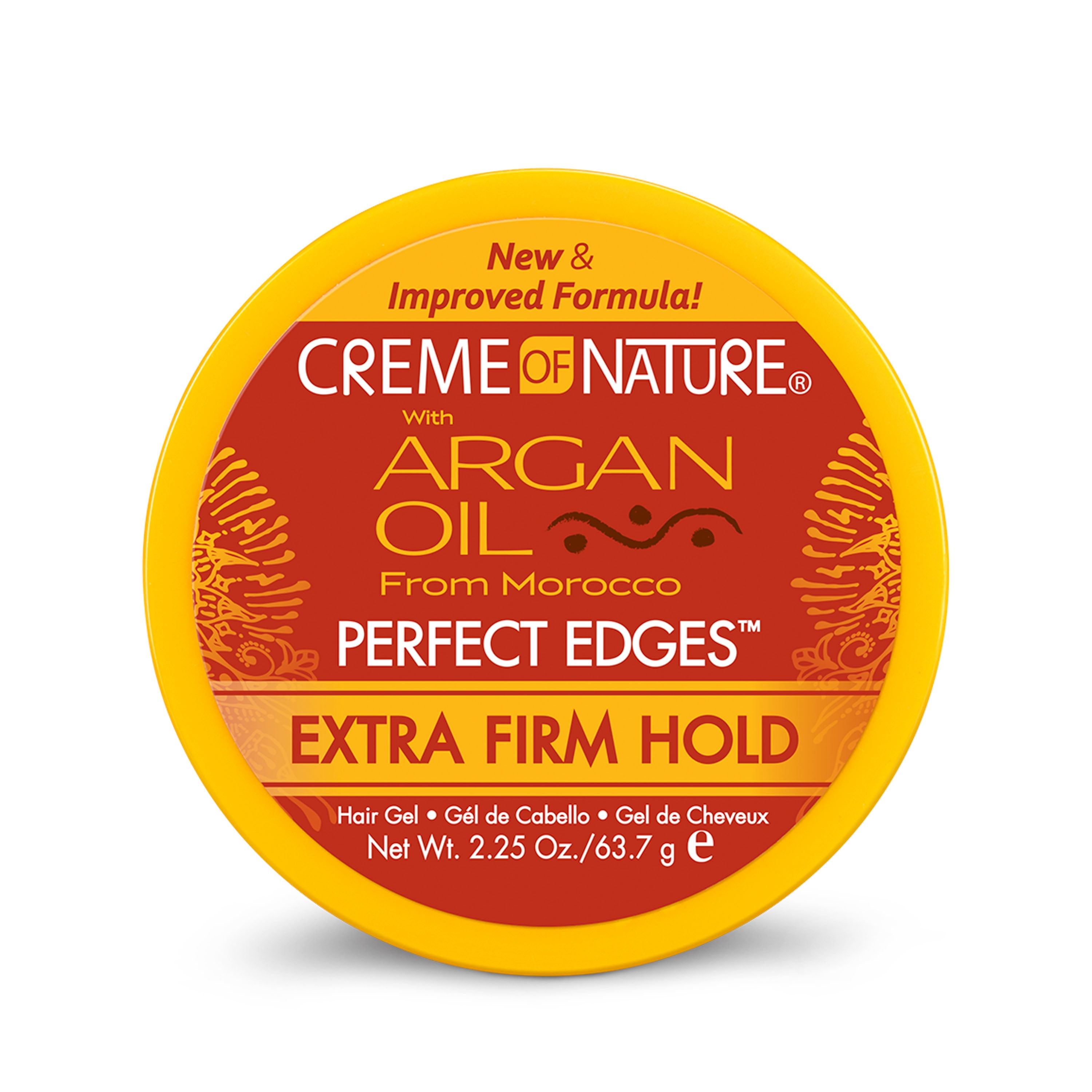 Creme Of Nature Perfect Edges 48 HR Extra Firm Edge Control Hair Styling Gel with Argan Oil is Infused with Argan Oil, Perfect Edges™ Extra Firm Hold Edge Gel smoothes & controls hard-to-tame edges, moisturizes, conditions & delivers exotic shine. This improved formula controls frizz & leaves no residue, making it great for creating sleek, smooth styles, ponytails, sculpting & styling the hair.
