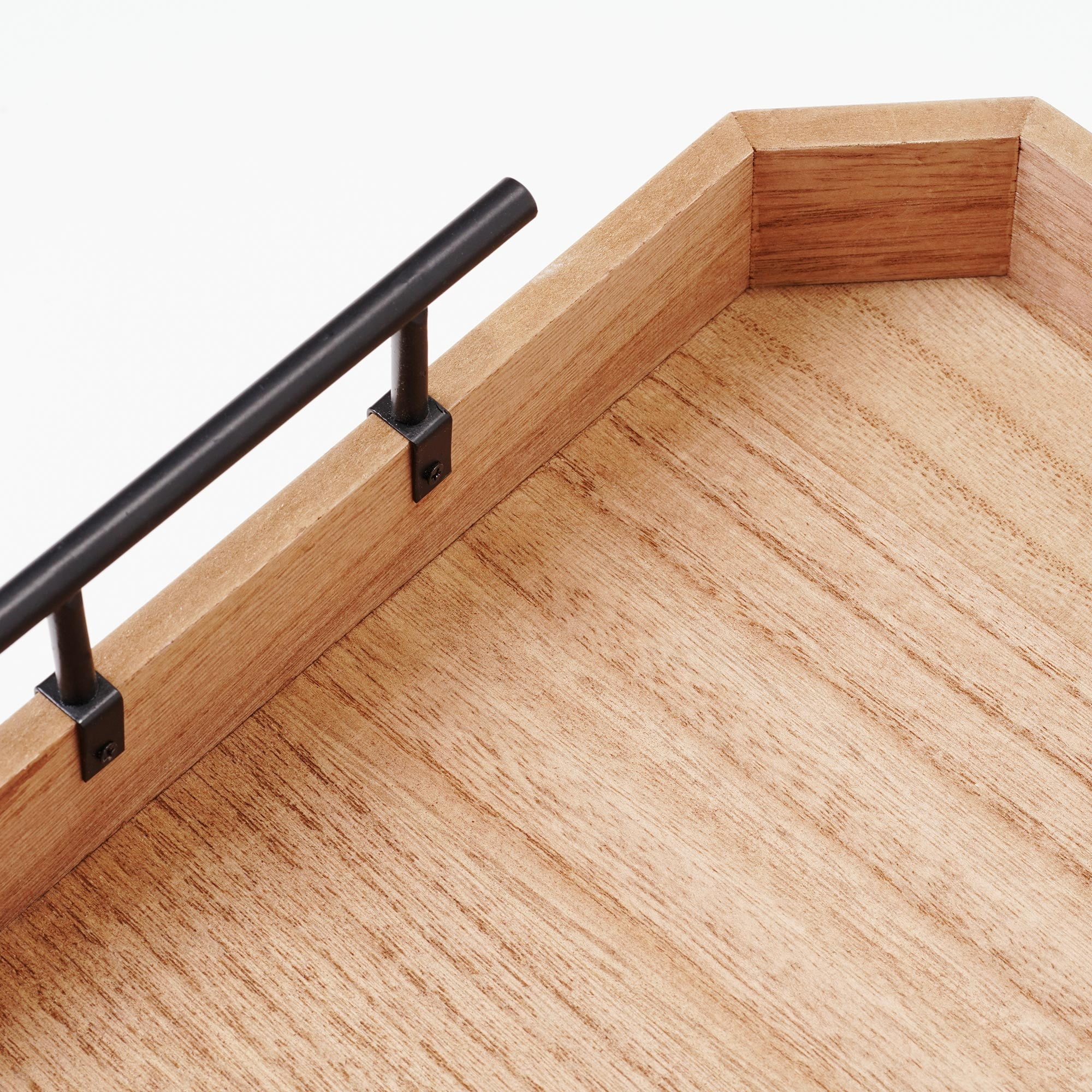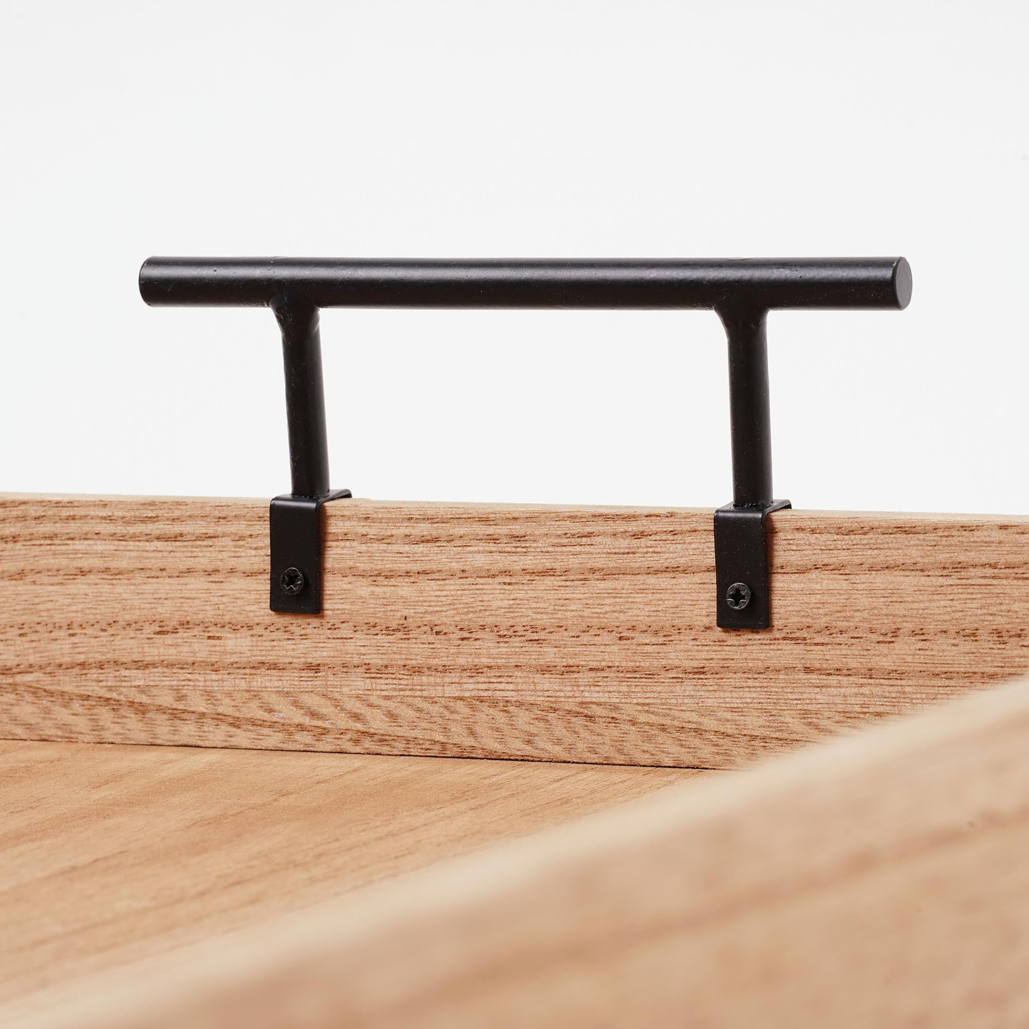Serve up tea, deserts, or sandwiches on our wood rectangle serving tray with durable metal handles. Additionally, this accent piece works well as dining room/kitchen storage or a display shelf for glasses and plates. It is also perfect as a housewarming gift or on any occasion. Dimensions: 12" x 18"