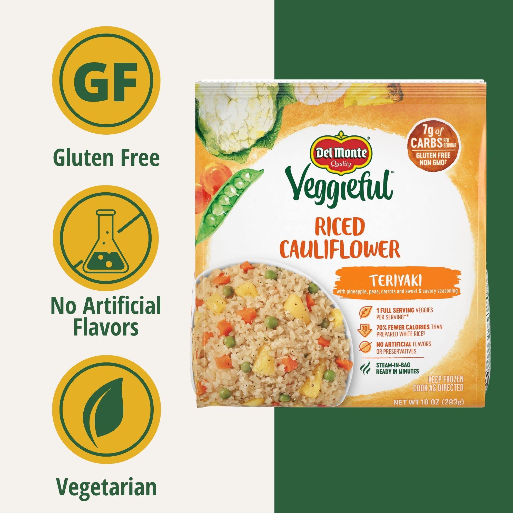 - One pack of 10 oz Del Monte Veggieful Riced Cauliflower Teriyaki