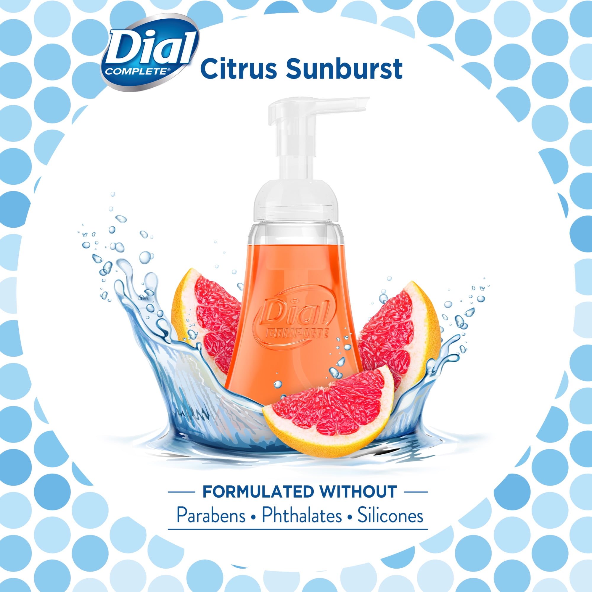 Dial Complete Antibacterial Citrus Sunburst foaming hand wash is specifically formulated to remove stubborn food odors and leaves your hands smelling great with the bright scent of fresh citrus. To use: pump into DRY hands, lather vigorously for at least 30 seconds, rinse clean with water. Remember: Pumping soap into dry hands saves energy and water! This package contains one pump bottle of Citrus Sunburst scented Dial Complete Antibacterial Foaming Hand Wash.