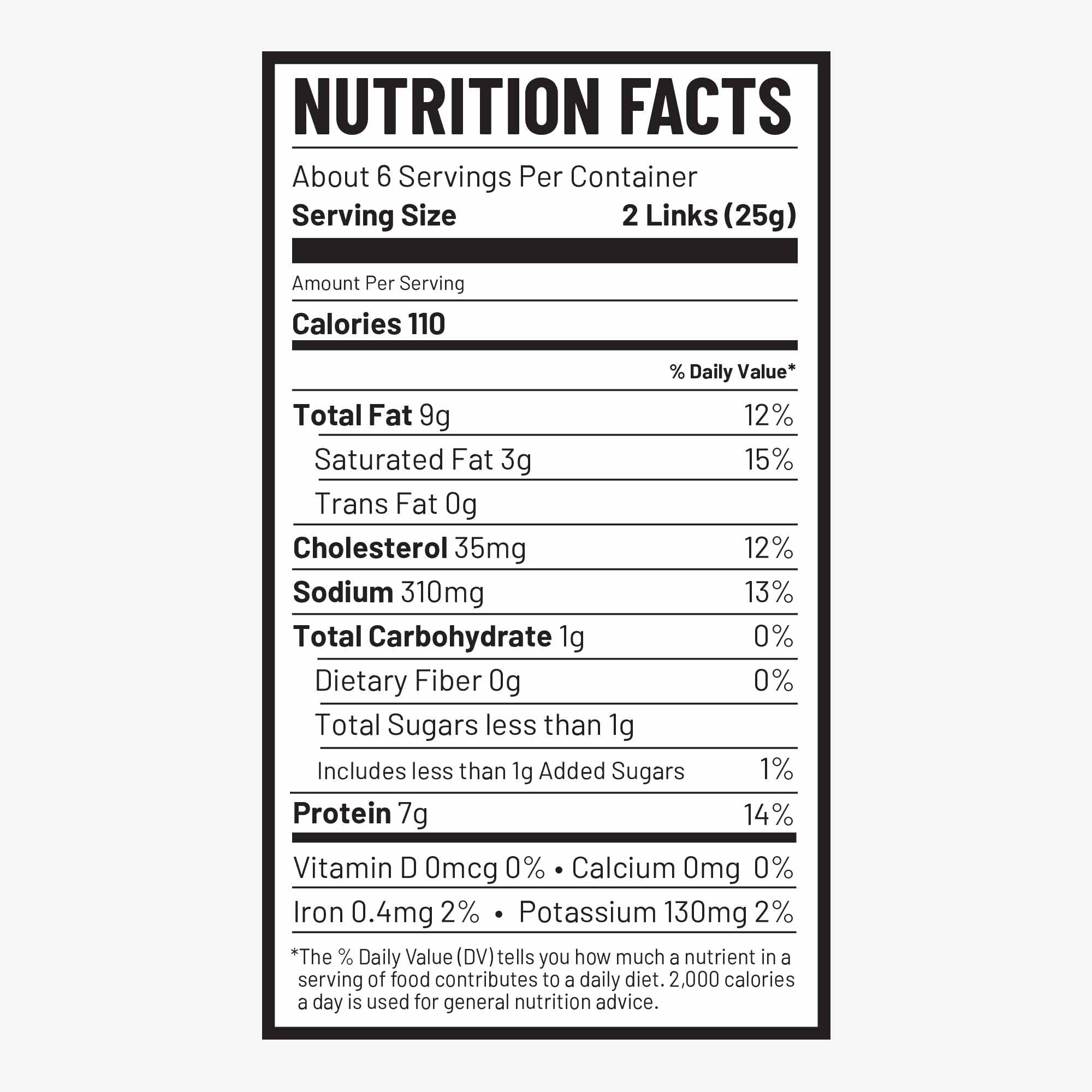 - Keto Friendly Smoked Sausage Snack that fits a low carb lifestyle – 7g of Protein, 1g Net Carbs (1g Total Carbs minus 0g Dietary Fiber), and 0g Added Sugar per serving