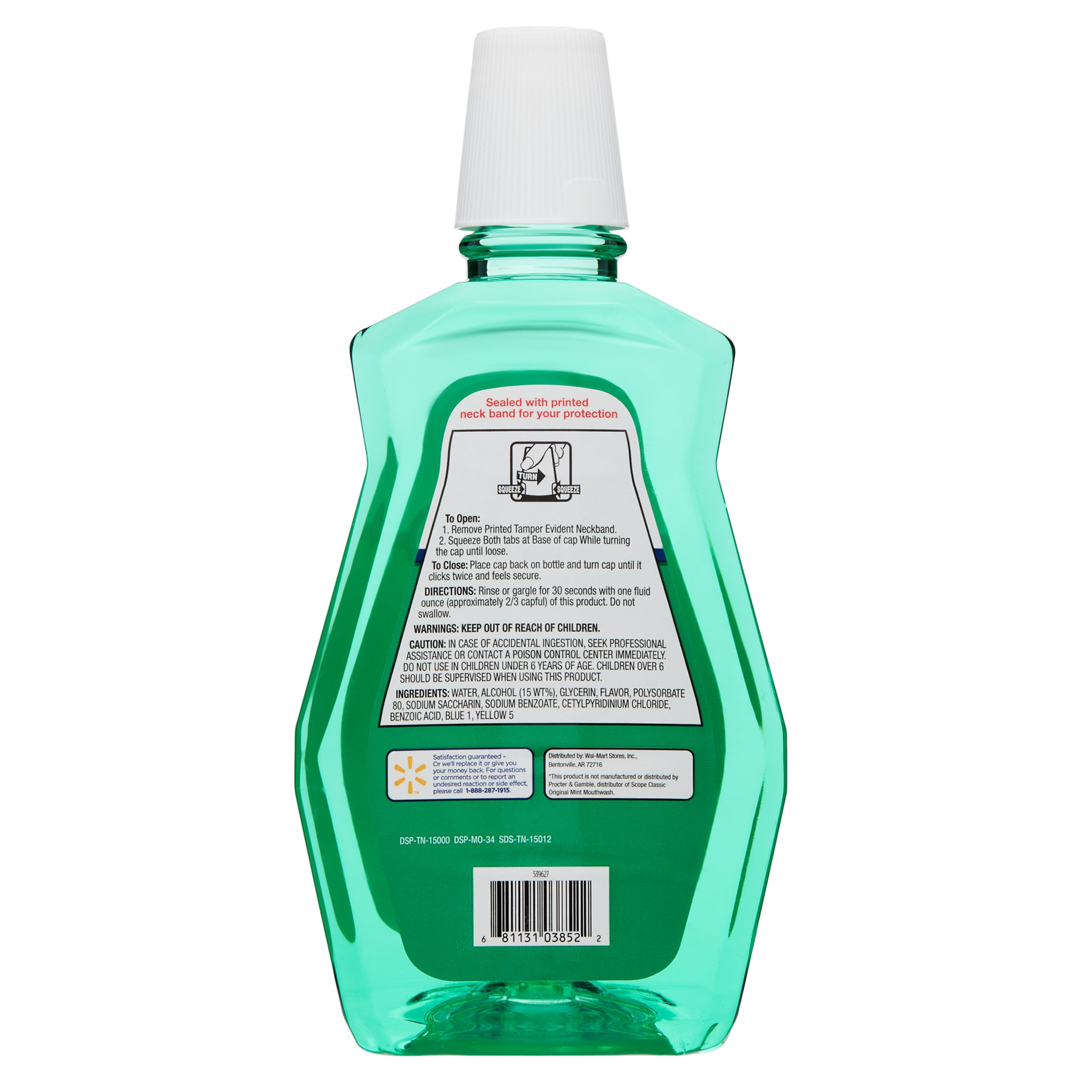 Keep mouth health at its best with a minty twist, with the Equate Mouthwash. Gargle every morning and your mouth and tongue will feel clean and refreshed. This 50.7 fluid ounce bottle has plenty for multiple uses, and is the ideal thing to help wake you up and get the day off to a fresh start. The fresh mint mouthwash is super easy to use just measure one fluid ounce using the included bottle cap (approximately a capful) and rinse or gargle for 30 seconds. Just like that, one can rid their mouth of unwanted odors in addition to daily brushing and flossing. This germ-killing mouthwash is the ideal product to keep in the bathroom at home for whenever one needs to freshen up and take on the day with a clean and minty smile. Take a quick rinse first thing in the morning, before entertaining guests or prior to bedtime. This product should be kept out of reach of children and not swallowed. Boost your oral health with the help of Equate Mouthwash.