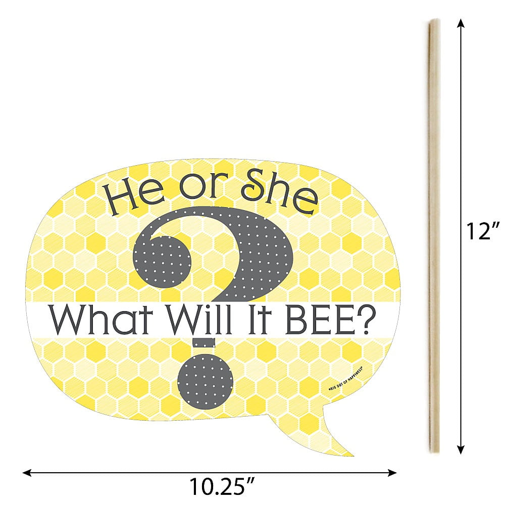 - 10-Piece Funny What Will It BEE? Photo Booth Props Kit INCLUDES 10 girl or boy arrow and speech bubble photo booth props, 10 wooden dowel sticks and stickers for assembly. EASY ASSEMBLY: Simply attach the printed DIY photo booth props to the wooden dowels with included reinforcing stickers.