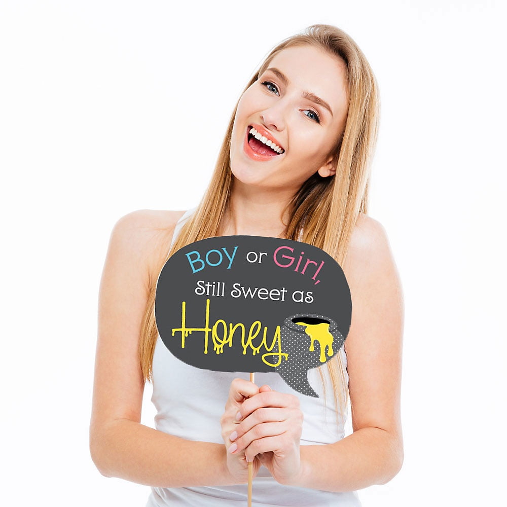 - PERFECT FOR ANY CROWD! Photo booth props are fun gender reveal party supplies for adults and kids – everyone will love the funny sayings on these What Will It BEE? photo booth props. Take entertaining and shareable party photos while making memories with these funny photo booth props!