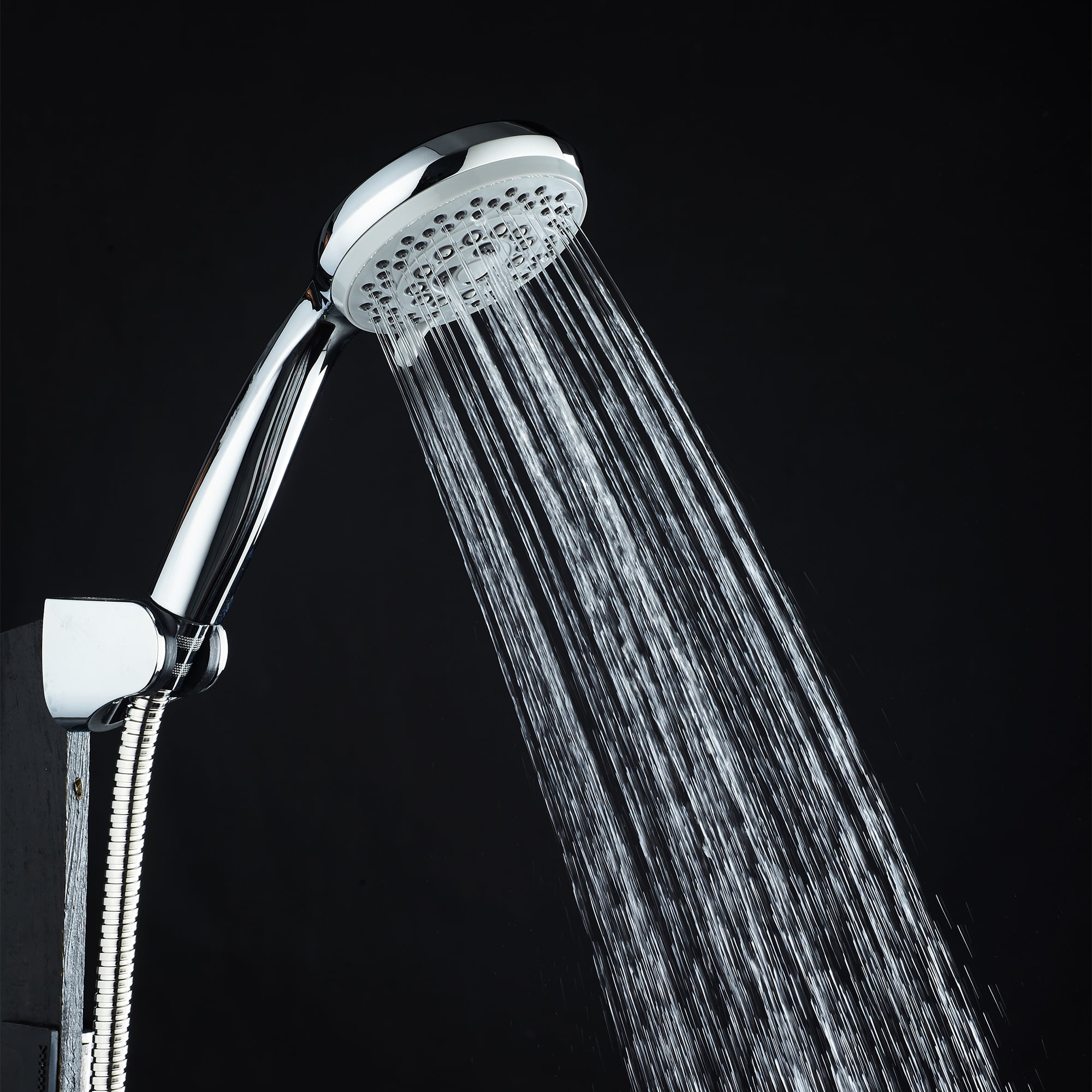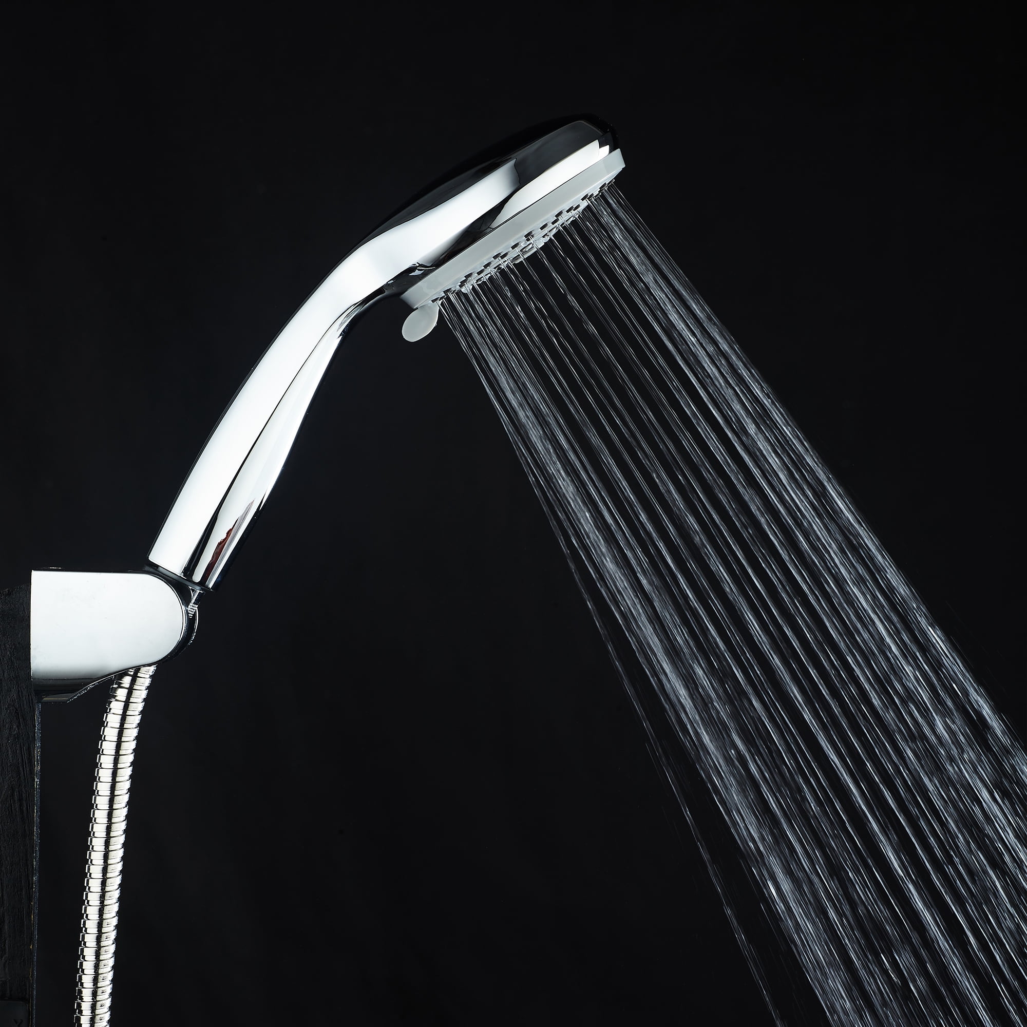 Rejuvenate, refresh, and renew with the power of therapeutic water massage. Independent clinical testing shows that Massage helps to soothe muscle tension, increase flexibility, and promotes restful sleep. The KLR1202C hand held shower features 5 spray settings, anticlog nozzles, and the water saving trickle setting to help conserve water while you lather, save, and shampoo. Installs in minutes, no plumber needed. The 6.5 foot hose makes bathing children and pets convenient and simplifies cleaning your shower.