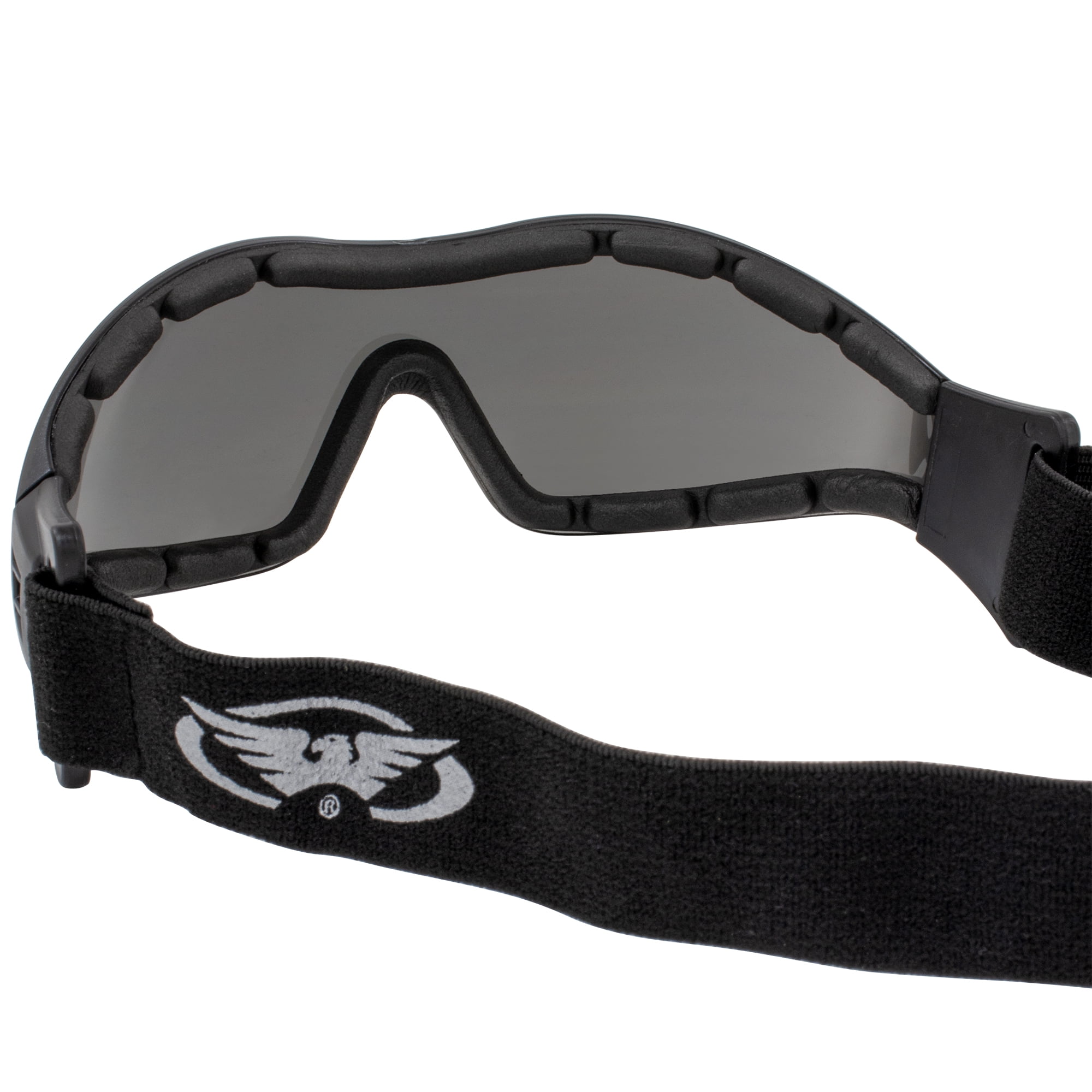 Give your eyes the protection they need for all of your extreme adventures when you wear a pair of our Global Vision Z-33 Anti-Fog Vented EVA Foam Motorcycle Goggles. Whether you’re on the road, the trails, the slopes, or even in the sky, these padded riding goggles shield your eyes from eye-tearing wind and dangerous airborne debris and dust. Intricately crafted in a one-piece aerodynamic wraparound lens, this pair provides unmatched eye protection to make your cruising as smooth as possible. Featuring a shatterproof polycarbonate lens with an ANSI Z87.1 safety rating, this pair can withstand high impact from virtually any flying debris for maximum eye protection. Plus, they are treated with double-sided anti-fog coatings that offer clarity of vision and ensure you can ride during gloomy conditions. And for a safe, secure, and comfortable ride, these glasses are also padded with soft, vented EVA foam designed to protect your eyes from dust, wind, and debris while also allowing adequate ventilation. The Z-33 also provides 100% UV400 protection from the harmful UVA and UVB rays of the sun and boasts a scratch-resistant coating that stands strong against daily abuse. Available in a smoke lens which helps reduce glare and light intensity so you can see the road better without distraction. This tint works best in bright, direct sunlight conditions. They also work well for other outdoor activities such as ATV riding, skydiving, shooting, and any other extreme sports where superior eye protection is important. And every pair comes with a microfiber pouch for cleaning and safe storage.