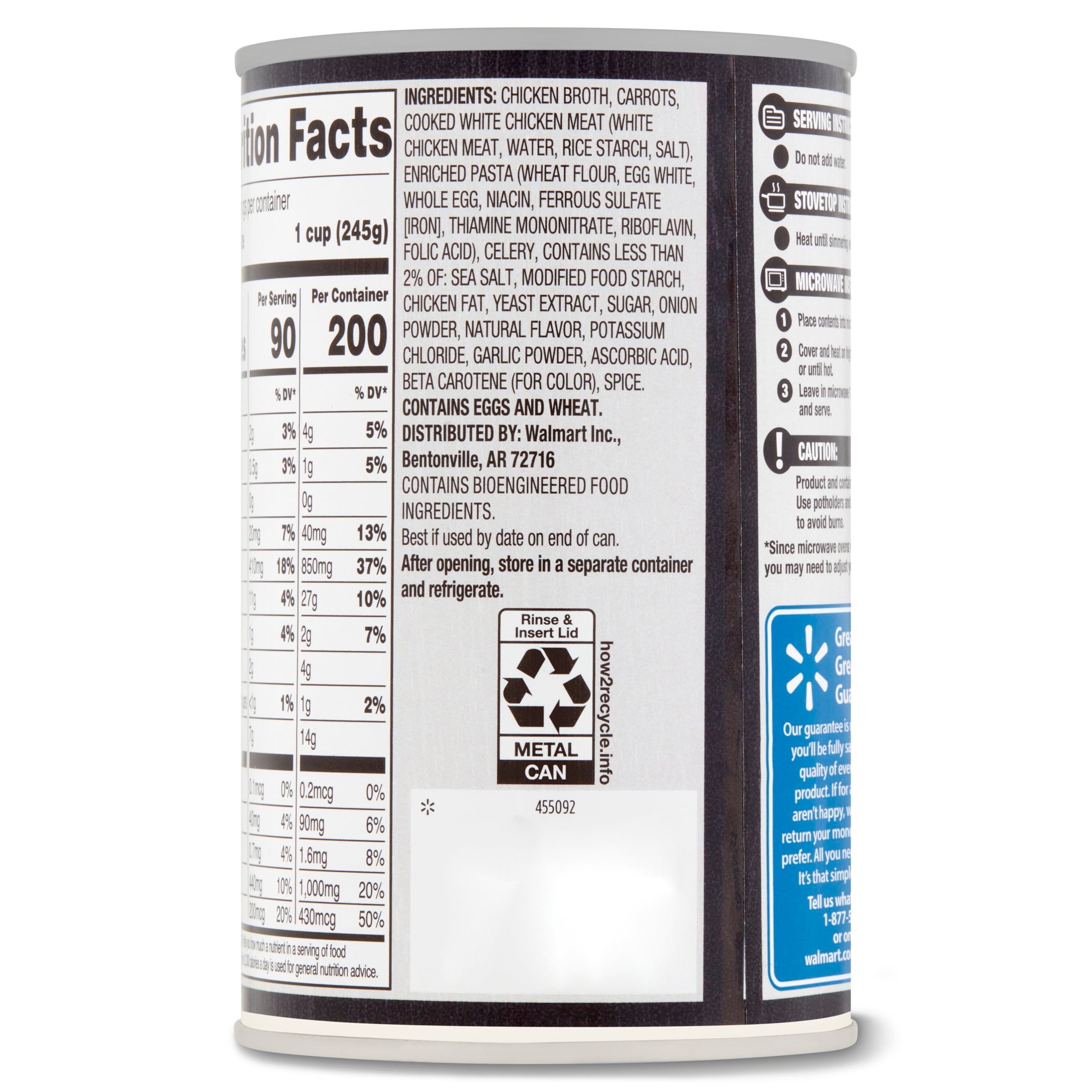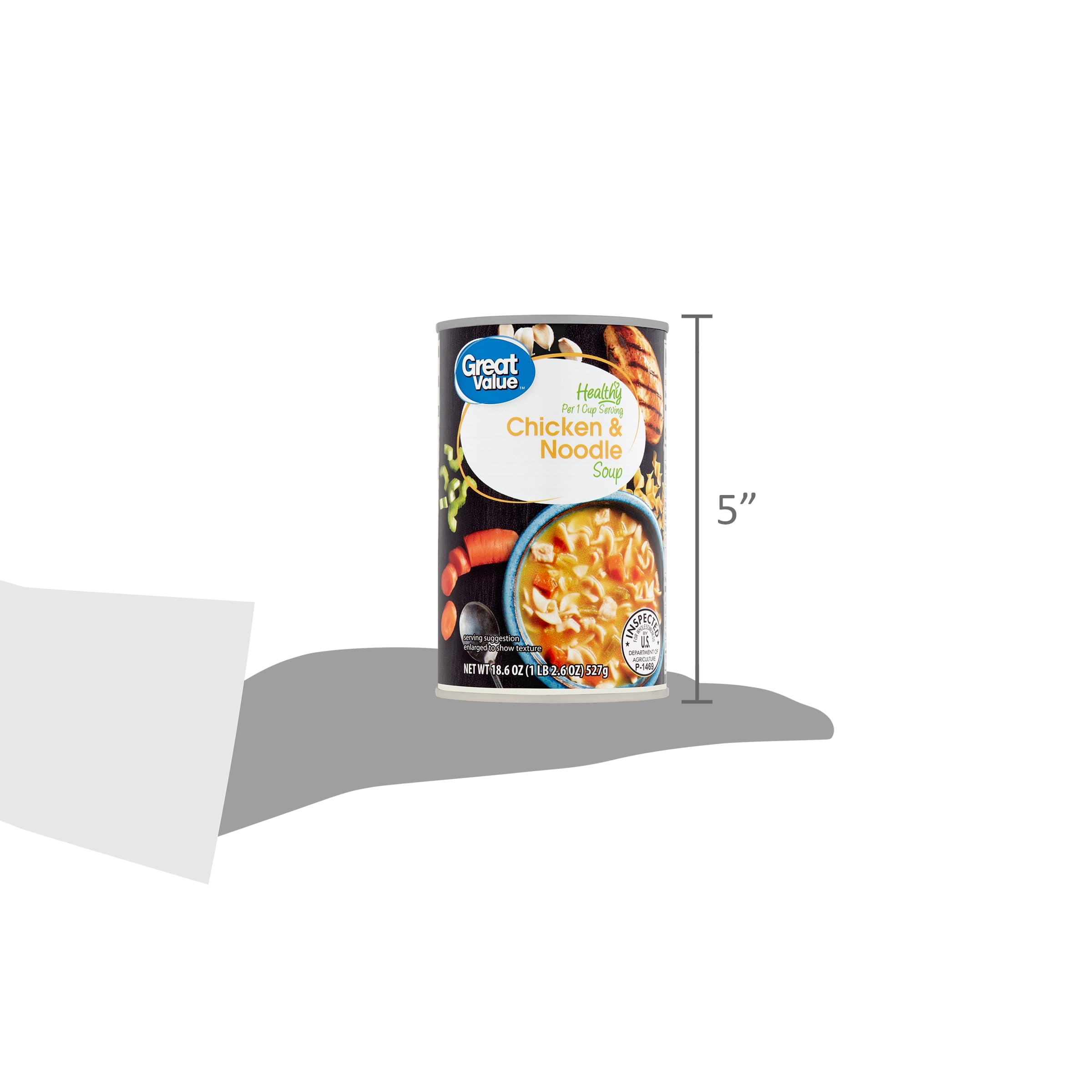 When your hunger strikes and you are craving a hearty, healthy meal, you should definitely reach for Great Value Chicken & Noodle Healthy Soup. Every pantry — including yours! — should be stocked with this delicious meal that tastes incredible. This budget-friendly soup will make you feel like you’re getting the comforts of home right from the can. We start with real white meat chicken breast slow cooked with chunks of carrot, celery, herbs, and spices just like Grandma used to do. The chewy egg noodles and rich aromatic stock bring this meal in a bowl together whenever the mood strikes. Your kitchen will smell like you’ve been cooking all day, but your secret is safe with us.This soup is the perfect addition to any healthy lifestyle. Treat your family to Great Value Chicken & Noodle Healthy Soup today!