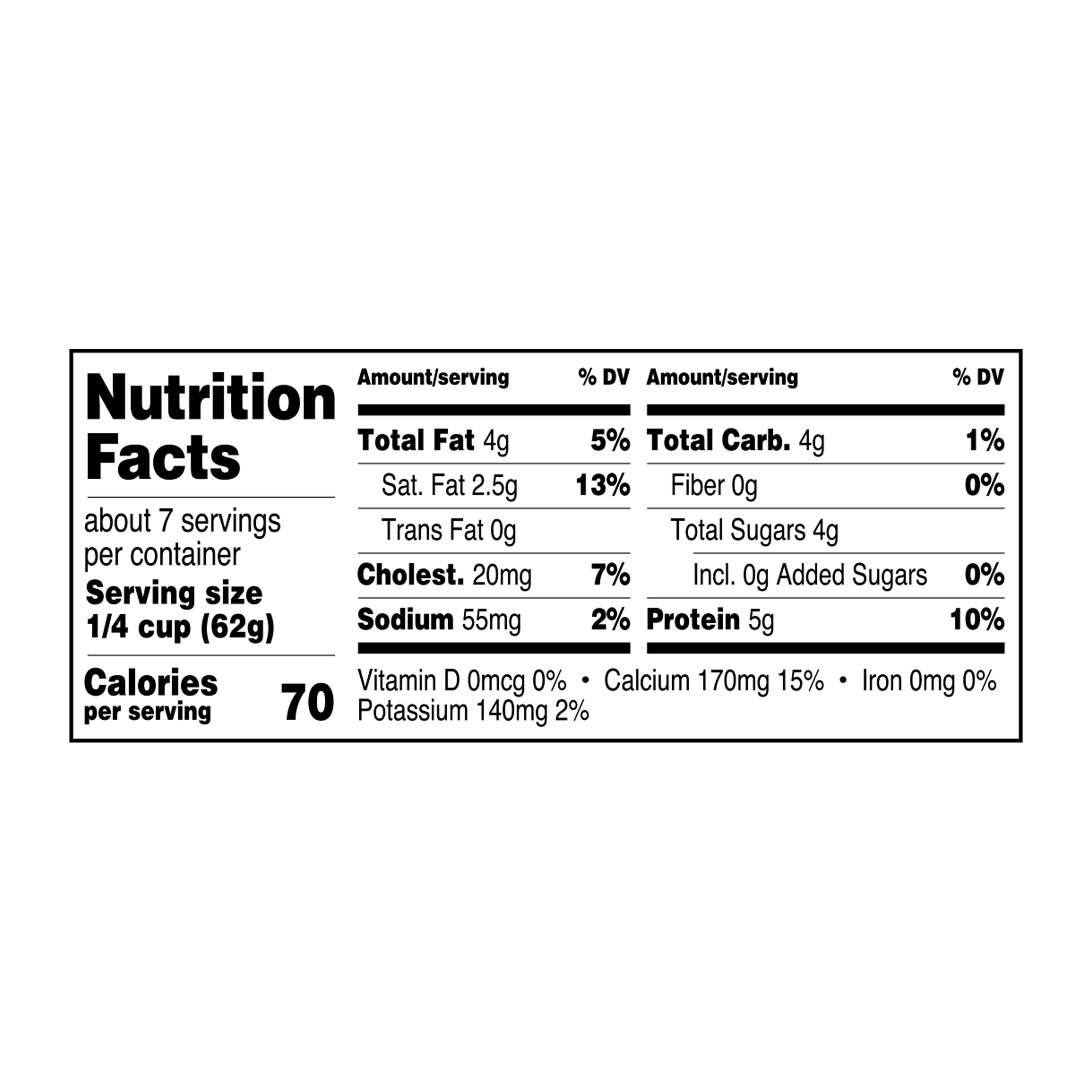 Our Great Value Ricotta Cheese is a smooth, creamy, and tasty cheese that can be used in a wide array of Italian meals and desserts. Spread it between layers of meat sauce, noodles, and mozzarella for a classic lasagna dinner or combine it with garlic, spinach, and black pepper to make an excellent filling for homemade ravioli. Made with part skim milk and containing five grams of protein with 15 percent of your daily value of calcium at only 80 calories in each serving, this flavorful cheese makes a tasty addition to your everyday diet. Enjoy our surprisingly versatile and delicious Great Value Ricotta Cheese today.