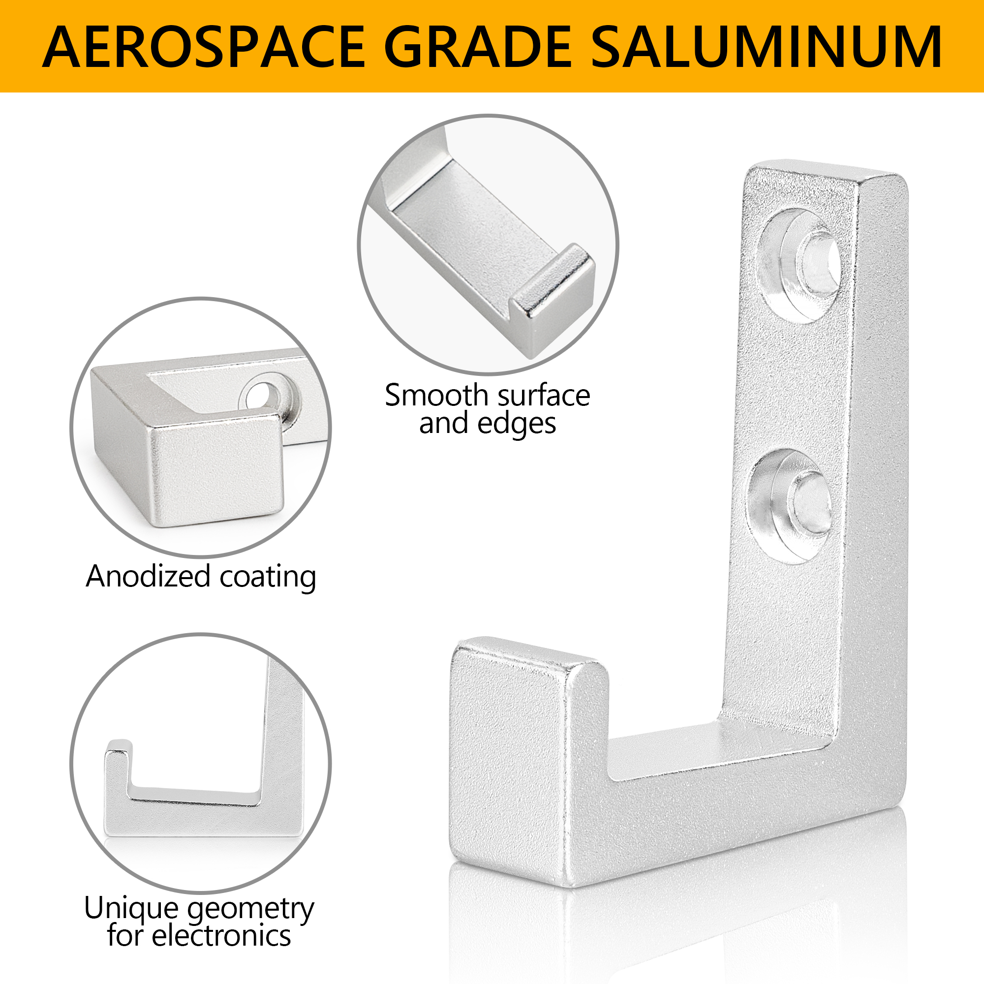 This wall hook is made out of aerospace-grade aluminum with a long-lasting anodizing coating. The unique geometry makes it works for a wide range of wall organizing such as hanging your laptop or tablet on the wall for the home office improvement, hanging kitchen cookware to free up more working space, or hanging up heavy-duty tools for indoor or outdoor space. In addition, this wall hanger can be used in the bathroom or dress room as a towel hanger, robe hanger, or coat hanger. This product comes with 4 hooks, long and short stainless steel screws, and wall anchors for hollow doors or drywall.Well Engineering Design-This door hook or door hanger hook make out of aerospace-grade aluminum with an anodized coating. Never Rust.