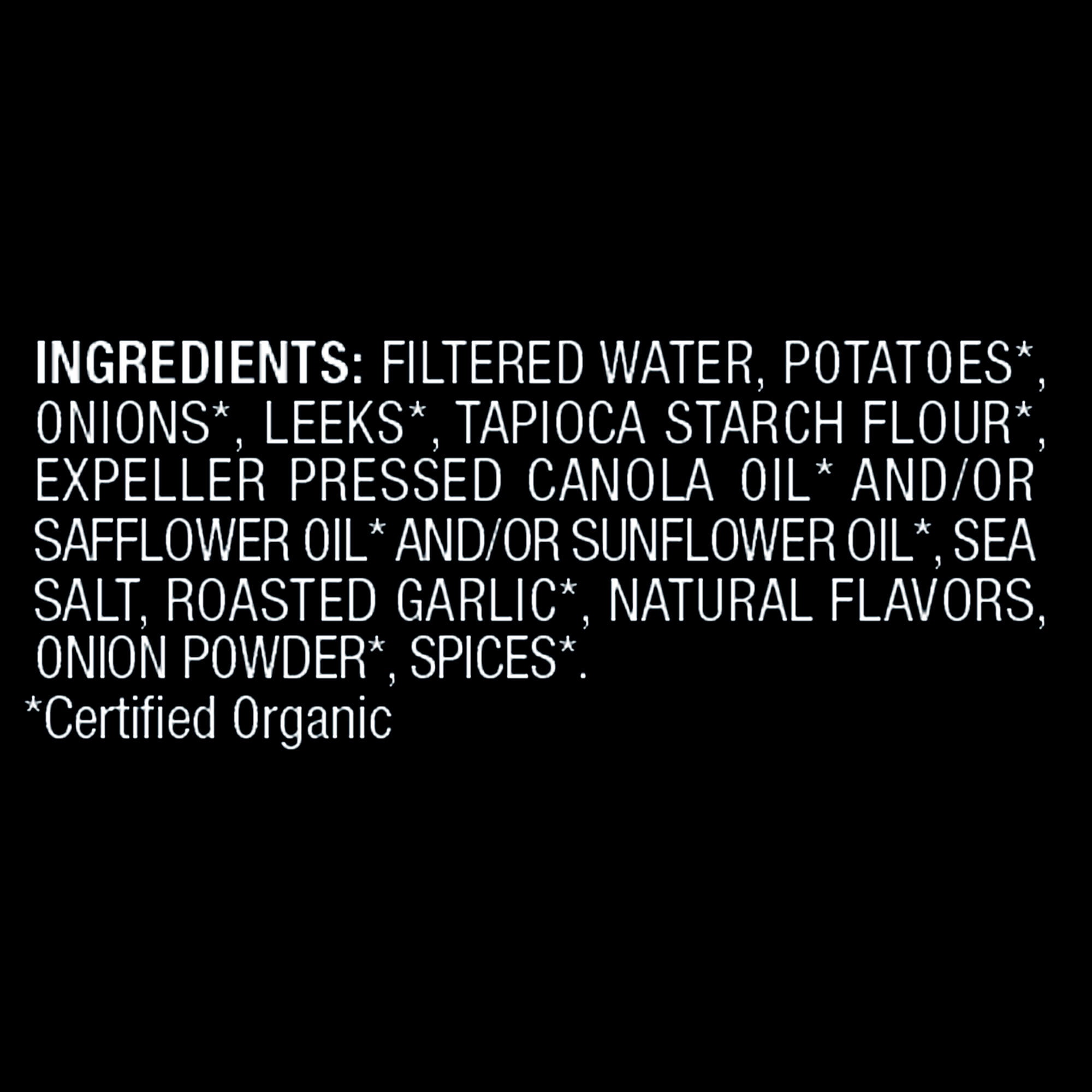 - Made with organic potatoes, sautéed leeks and roasted garlic
