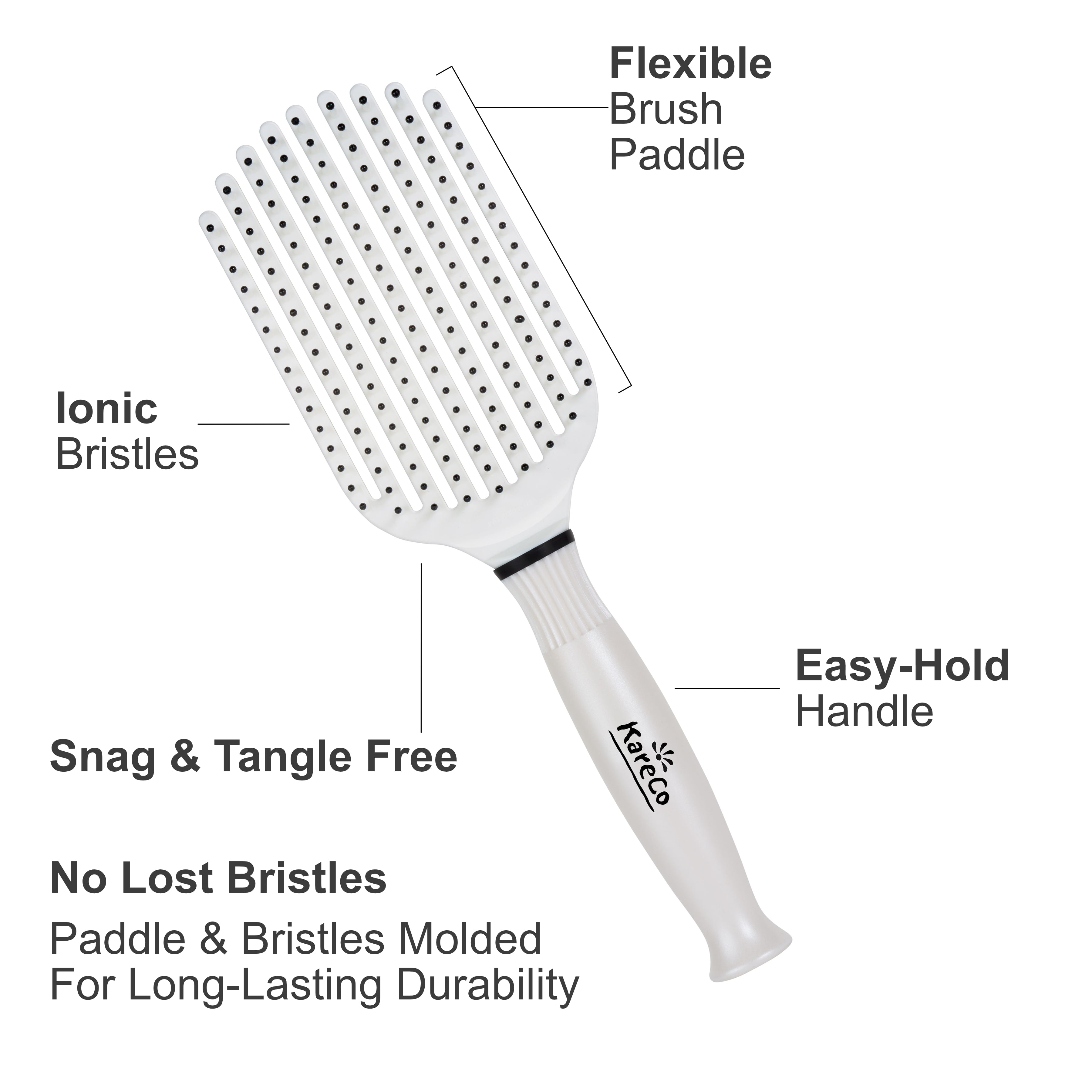 KareCo Tangle Buster Hair Brush Salon Professional Flexible Paddle, Pearl