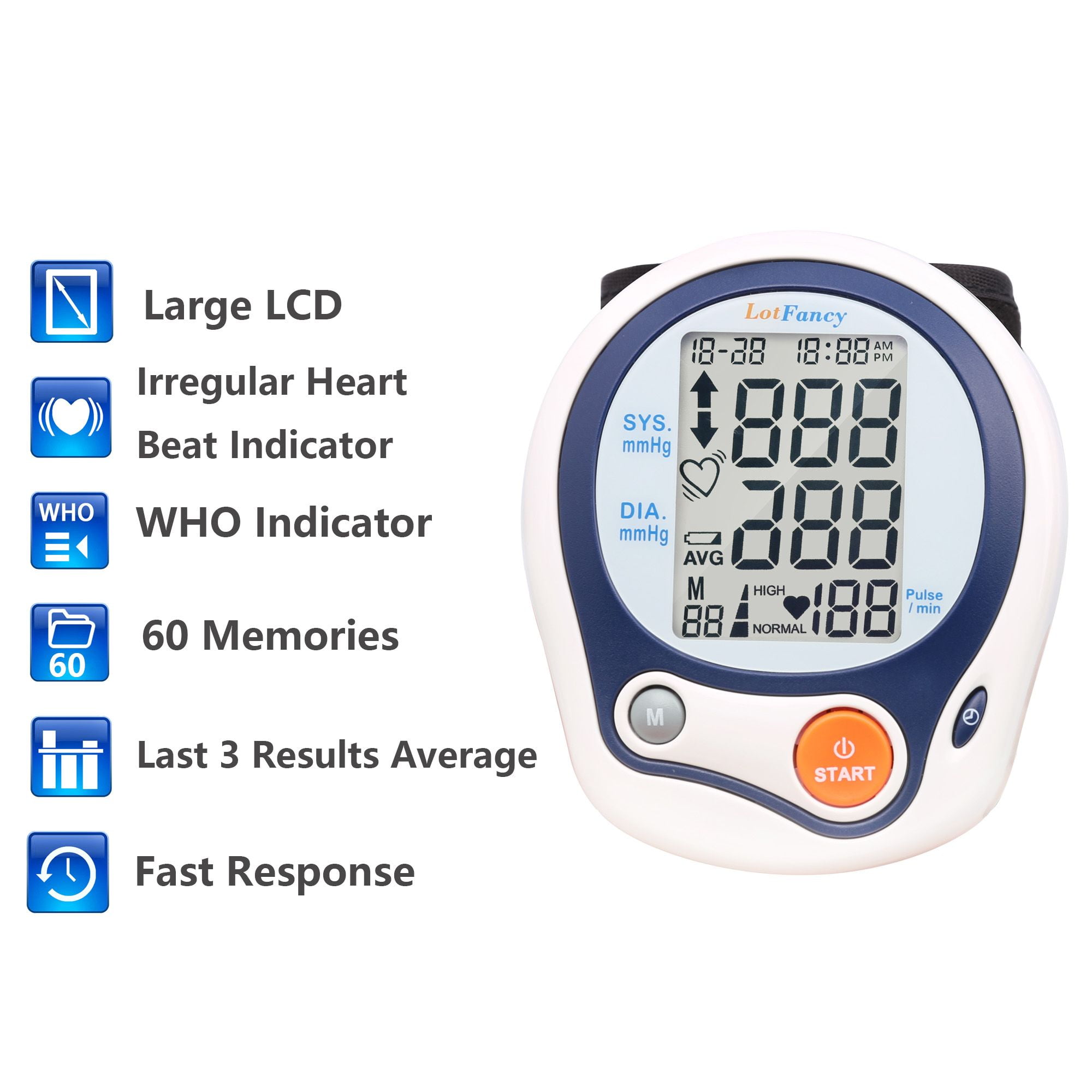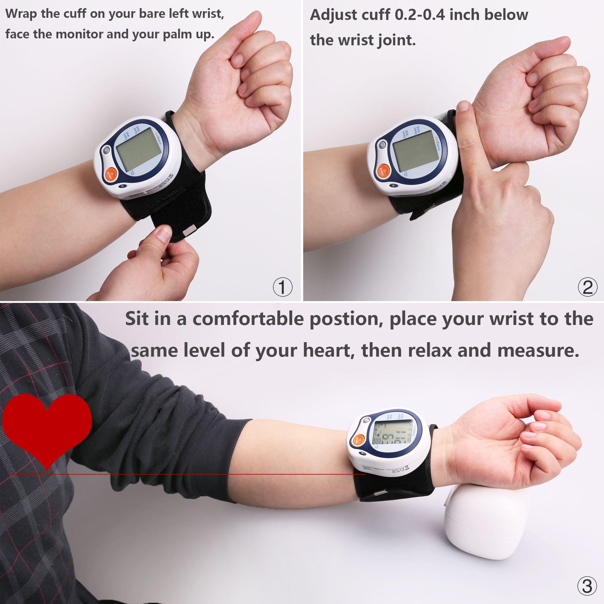 60 MEMORY: Our wrist blood pressure tester supports up 60 readings with time and date stamp for easy tracking blood pressure and heart rate
