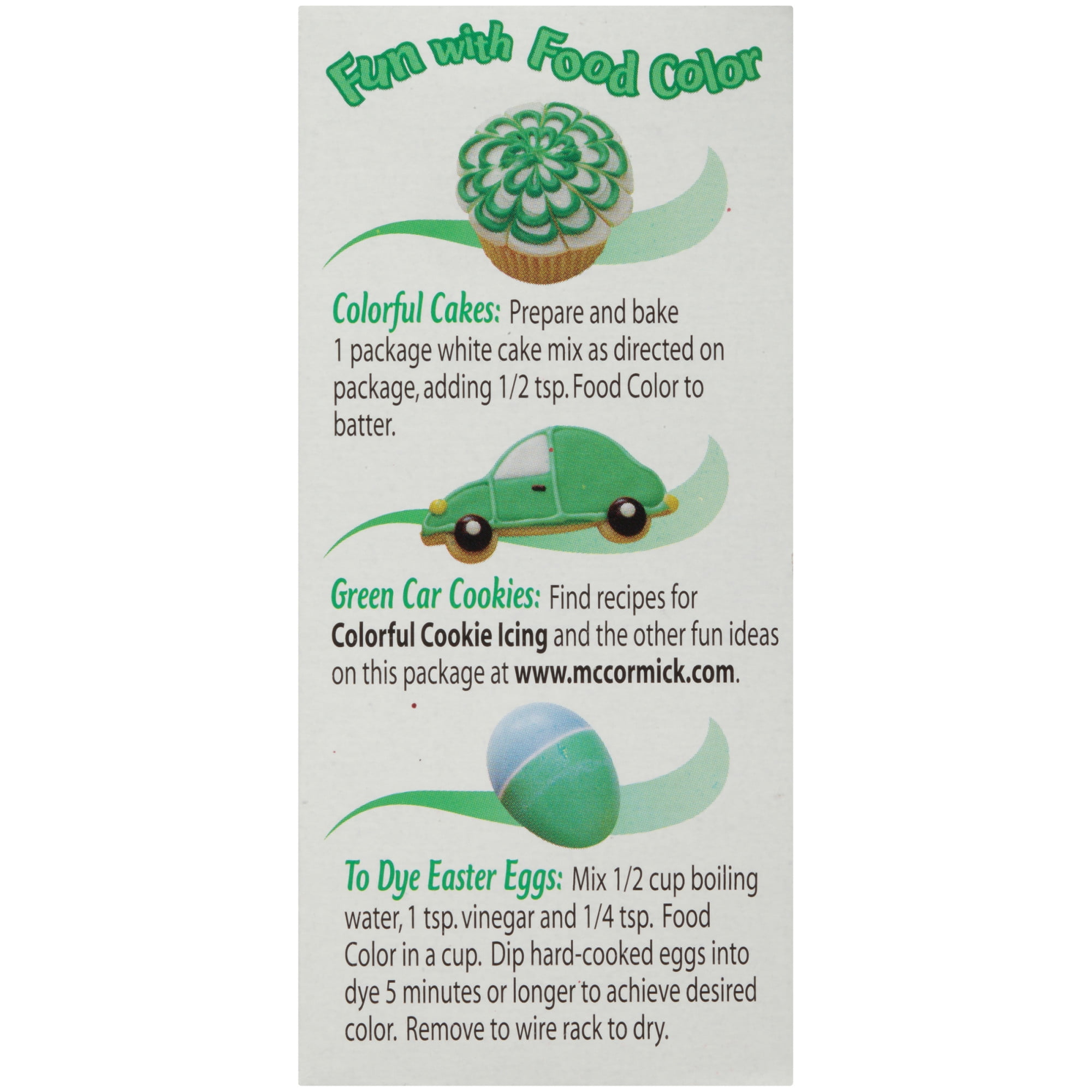 - Festive green food color made with premium McCormick ingredients