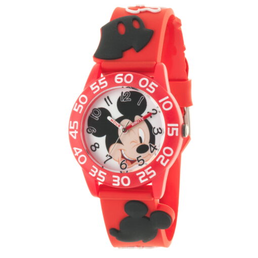 This watch features a 32mm plastic case and a 16mm red 3D plastic strap.