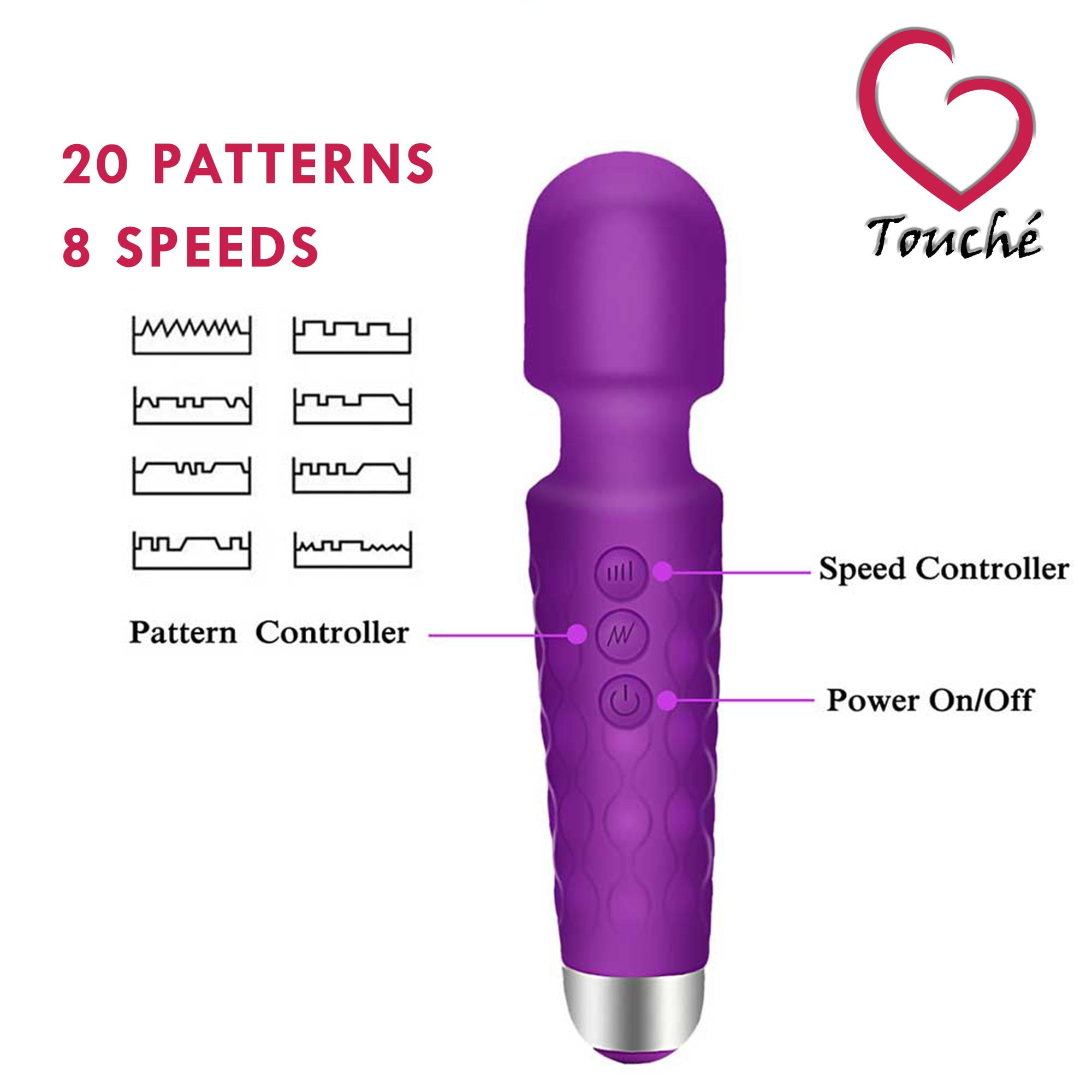 - 20 PATTERNS 8 SPEEDS – The Touch Mini Wand Massager has 20 different patterns with 8 speed styles. This allows you to find the perfect speed and pattern to fit your need,