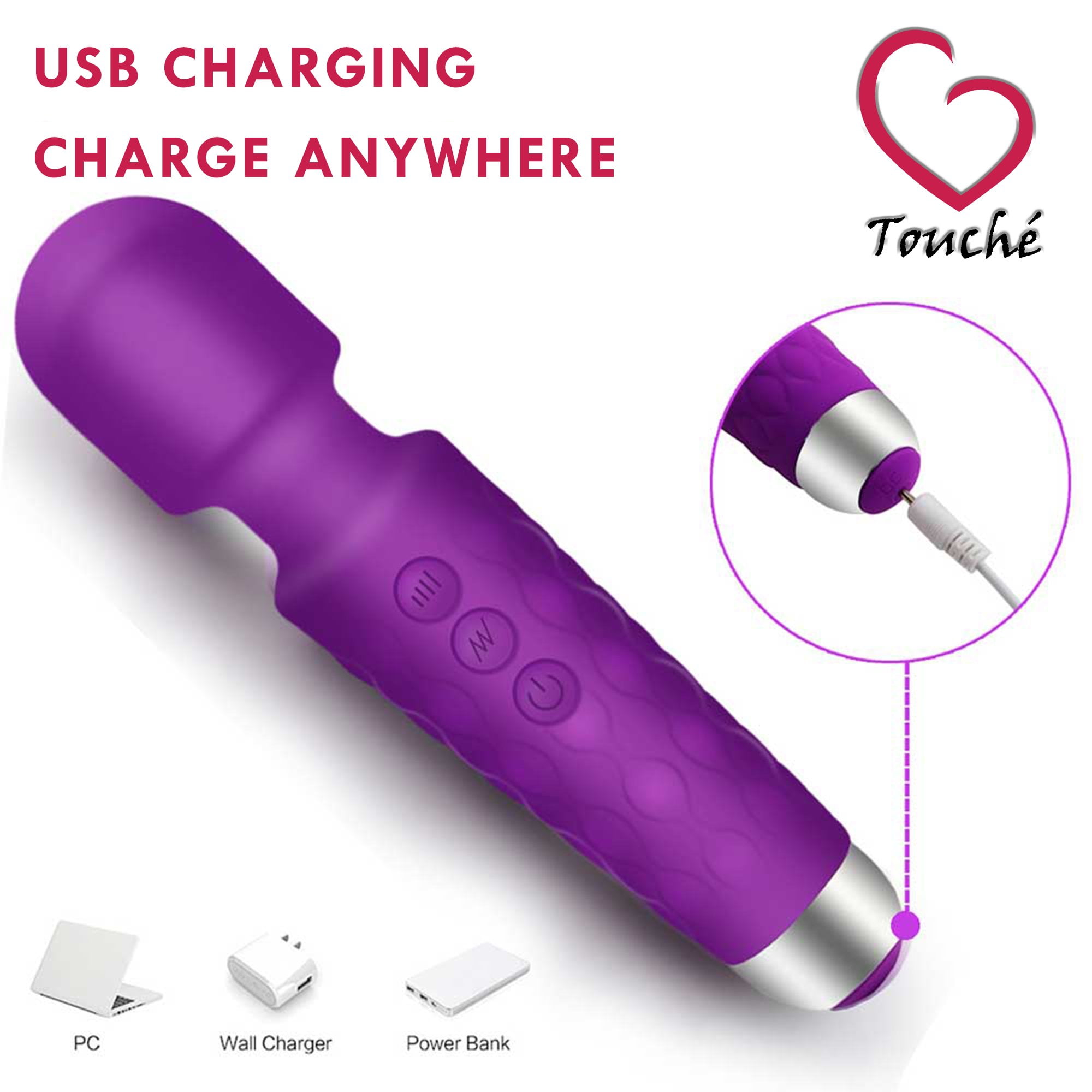 - PORTABLE DESIGN – The Touch Mini Wand Massager was built with a 500mA lithium battery, this rechargeable charges really quickly using a USB charger in 1 hours max and the charge lasts 1.5 hours. Recharge using a wall outlet, computer, phone, or power bank.