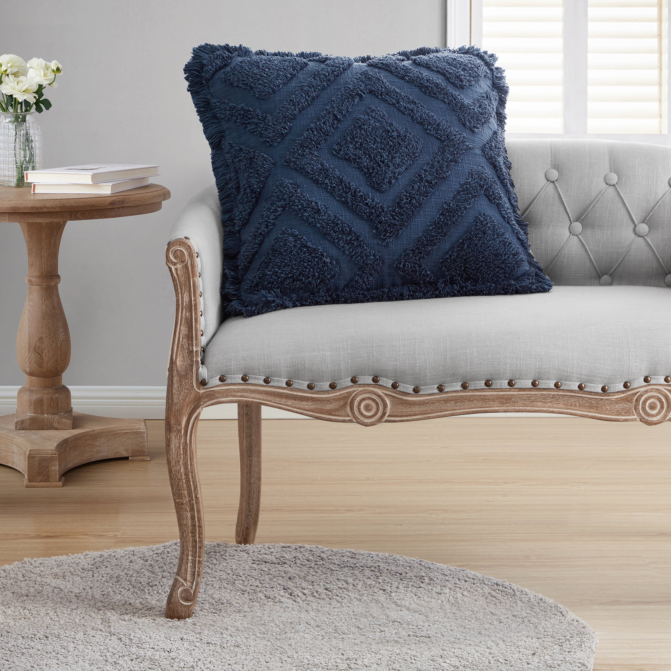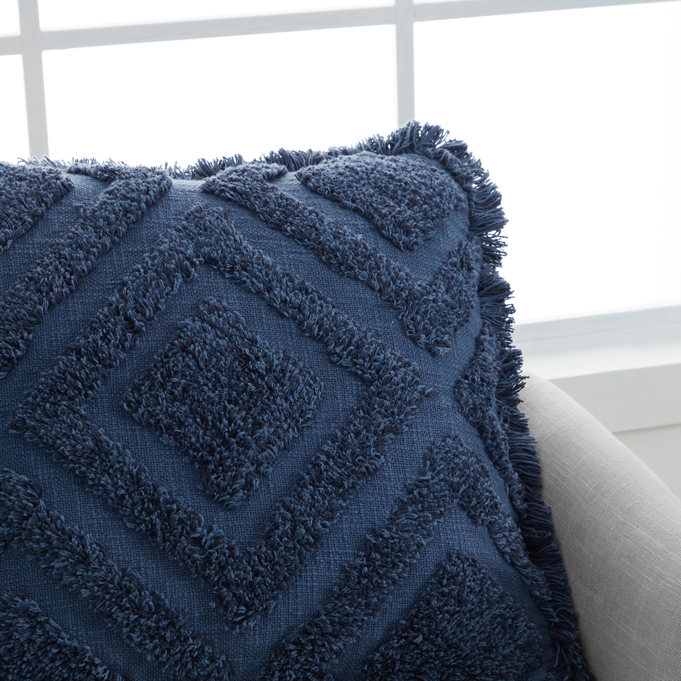 My Texas House Keller Tufted Cotton Square Decorative Pillow Cover, 20′ x 20′, Navy