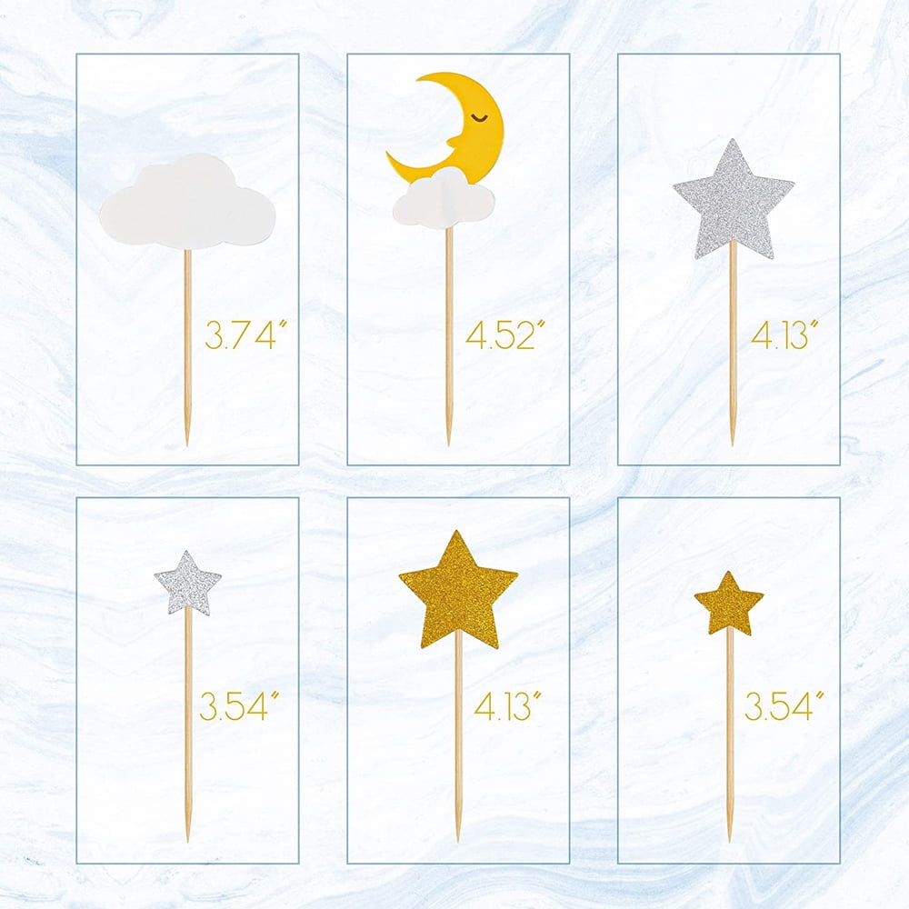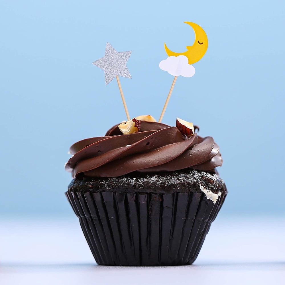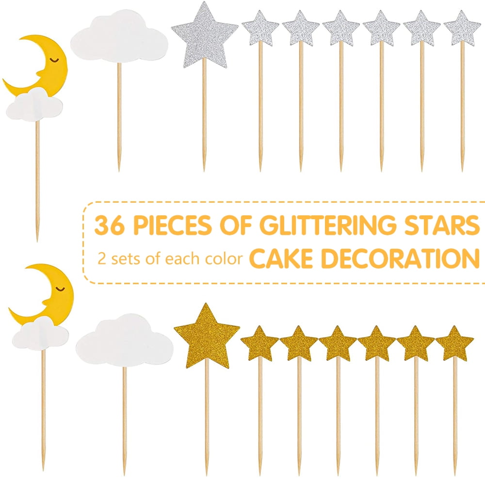 Materials: the glitter star moon cup cake picks made of bamboo toothpicks, non-toxic and harmless, safe to use.