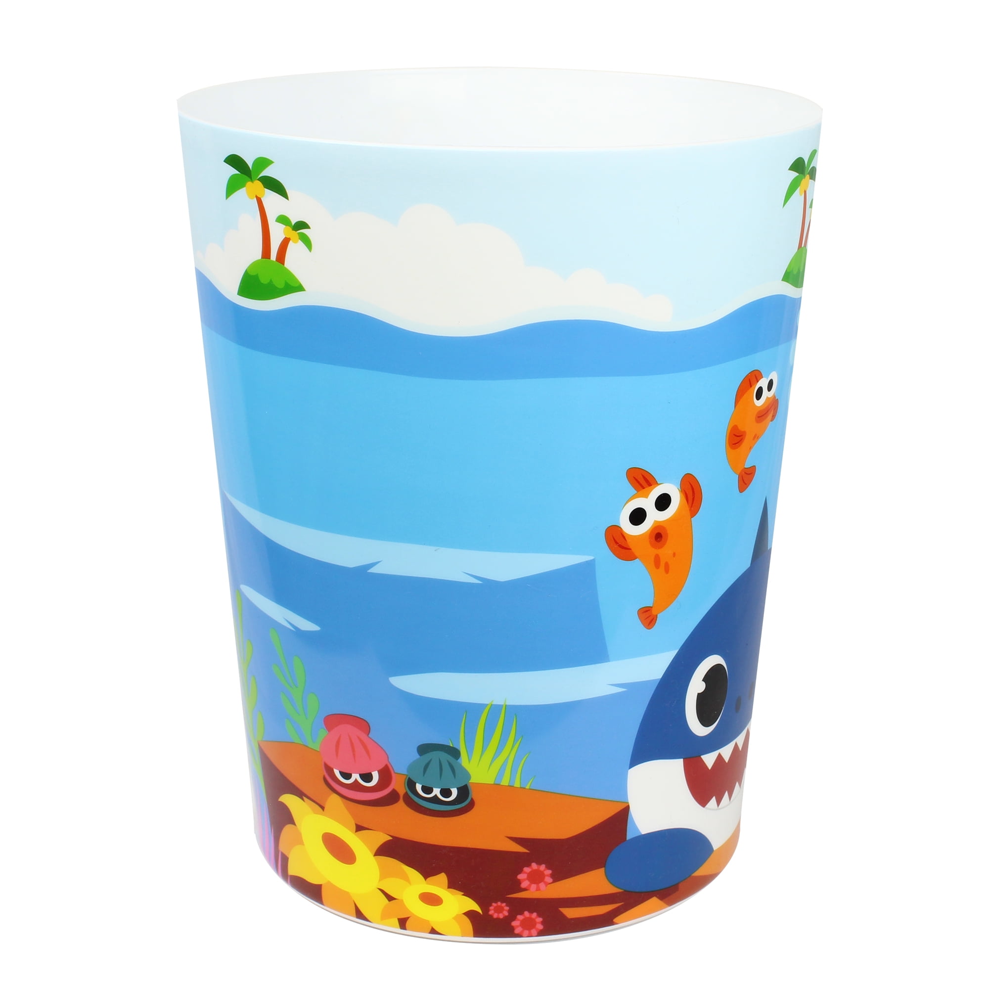 Baby Shark Kids Trash Can, 1.6 gallon, Bathroom and Bedroom, Blue