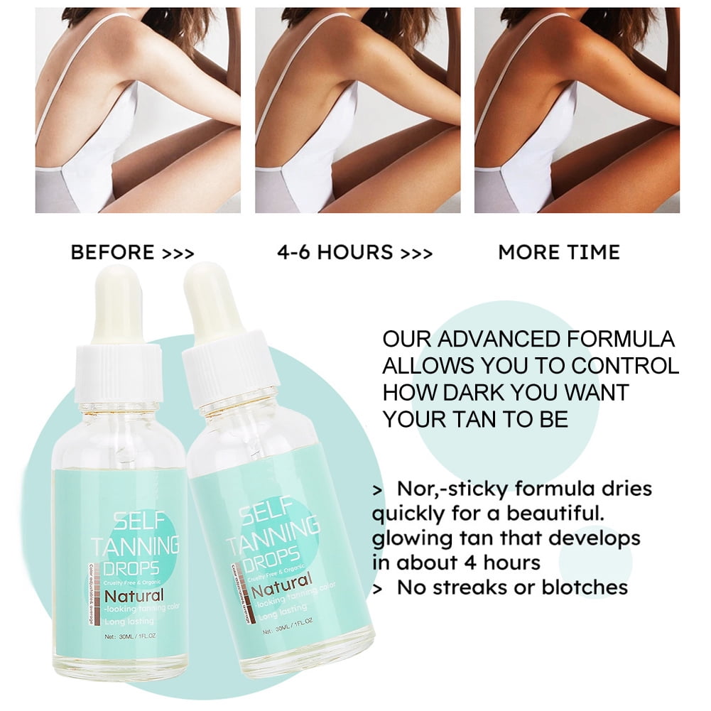 Item Type: Self Tanning DropsNet Content: 30mlUsage:1.Apply 1 – 12 drops according to your demand for color to your favorite moisturizer, serum, oil or , mix and apply to , dry skin.2.Suitable for areas requiring tanning. The more drops added, the darker the tan will be. Wash your hands after application.