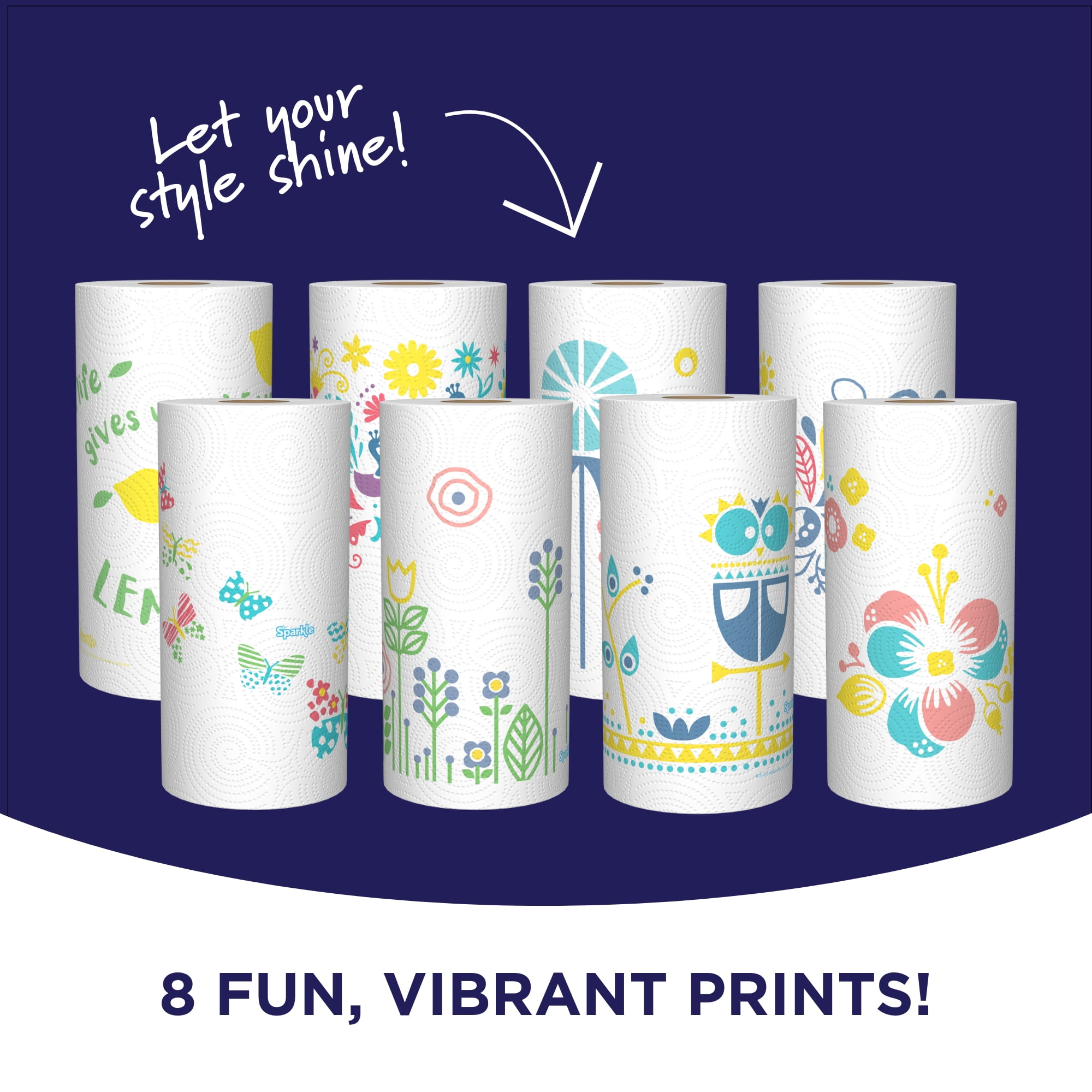 Sparkle Pick-A-Size Spirited Prints Paper Towels with Thirst Pockets are designed with a perforation in each sheet so you can pick between a full size or half size sheet for your everyday tasks. Each Double Roll contains 110 2-ply sheets. Sparkle Paper Towels with Spirited Prints designs include stylish designs that can brighten up your home and are just right for cleaning up your everyday messes without cleaning out your piggy bank. Whether you need to clean up a mess in your kitchen, take care of small spills, shine up your windows and mirrors, wipe your hands or face clean or add a pop of color to your home, Sparkle Pick-A-Size Spirited Prints Paper Towels allow you to spend less on your everyday messes. Stock up and save by ordering Sparkle Paper Towels online!