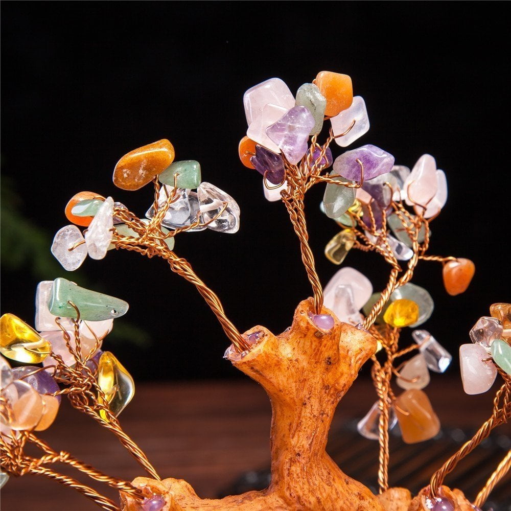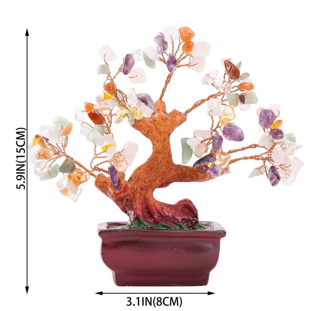 Bonsai, which translates to "potted plant", originated in China and Japan, is the art of aesthetic miniaturization of trees by growing them in containers. This gemstone money tree bonsai is very realistic and carefree. A nice decorative plant for home. It also symbolize to increase the luck of wealth,success and good energy. *Made of resin and gem stone, Leaves and branches can be expanded and arranged how you like. *Size Approx: L7" x H6" x D3"