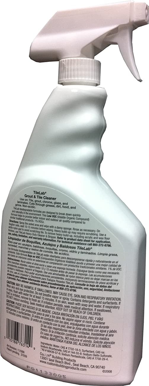 TileLab Grout and Tile Cleaner is an everyday cleaner that cuts through grease, soap scum, dirt and more. It is a non-acidic, low VOC cleaner that is made from a biodegradable formula.