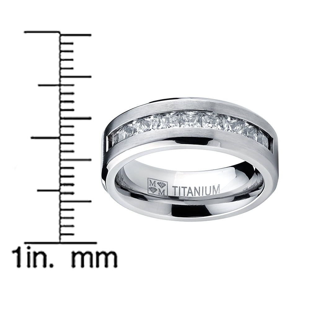 Titanium Men’s Wedding Band Engagement Ring with 9 large Princess Cut Cubic Zirconia